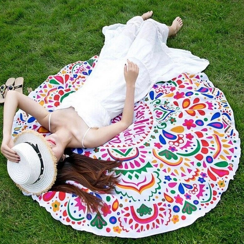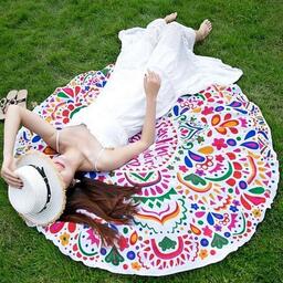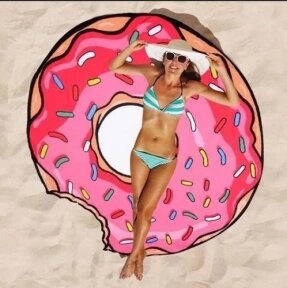 Круглое пляжное парео / селфи коврик / пляжная подстилка / пляжное покрывало / пляжный коврик Пончик розовый