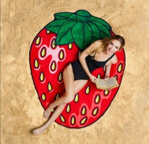 Круглое пляжное парео / селфи коврик / пляжная подстилка / пляжное покрывало / пляжный коврик Клубника