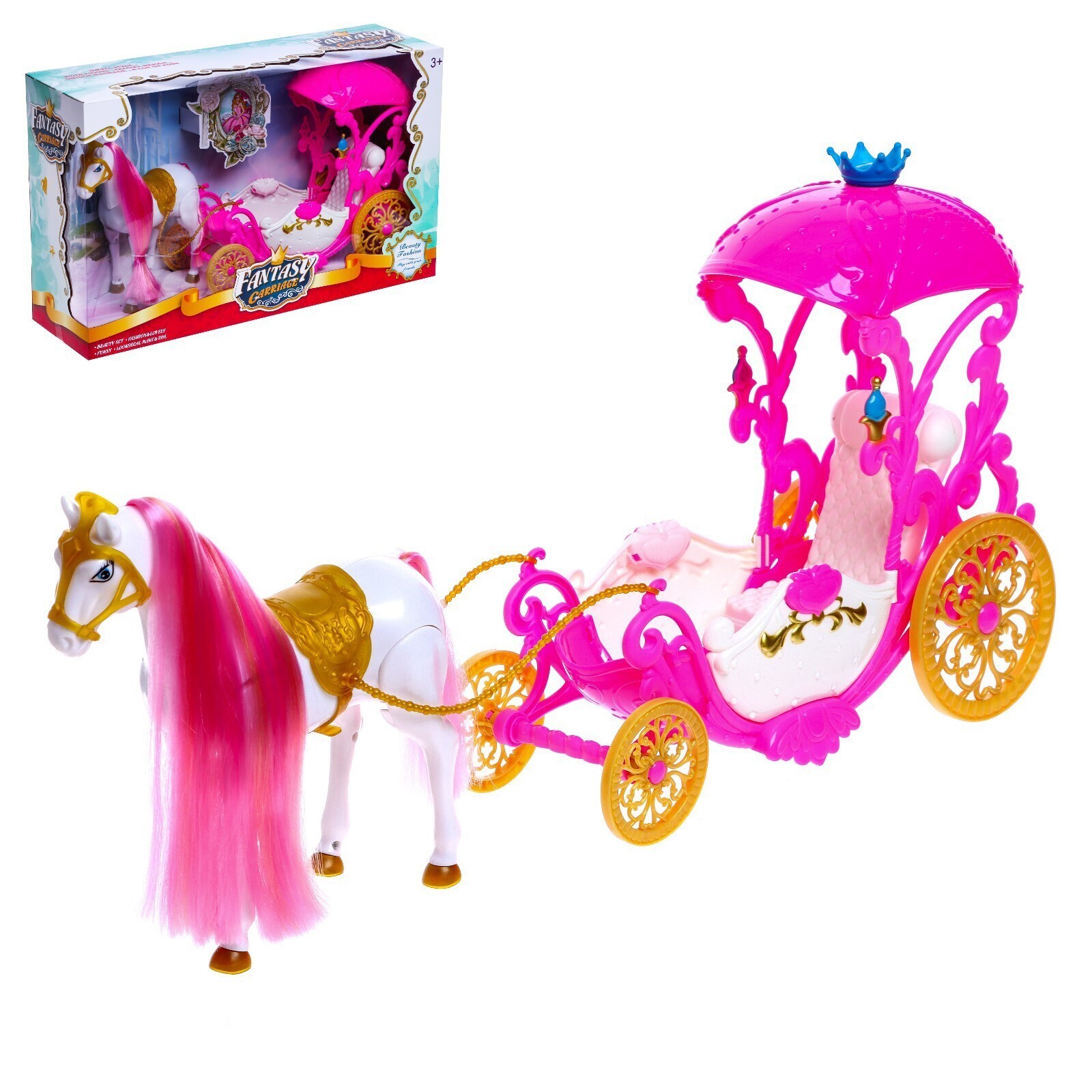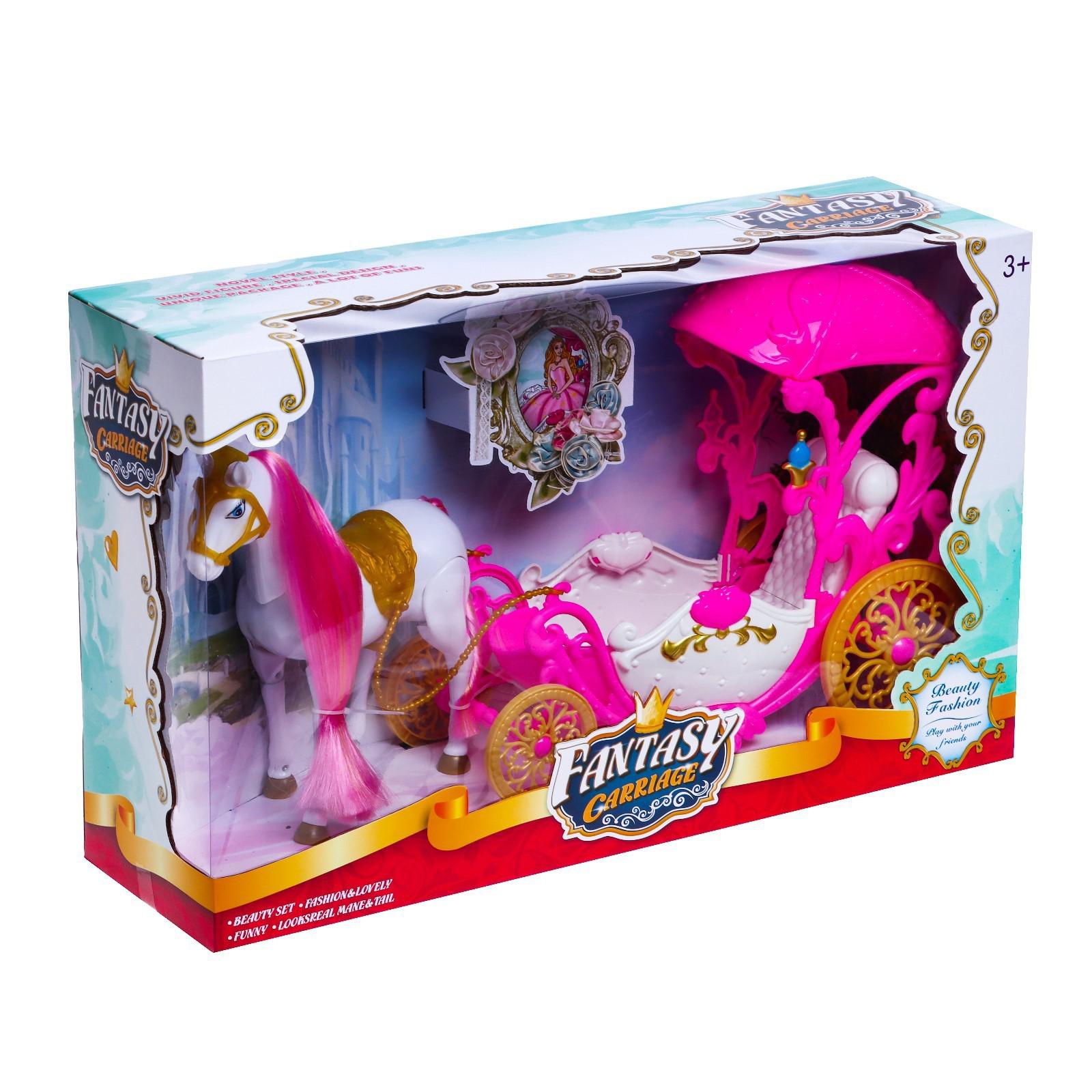 Каждая принцесса заслуживает свою карету! Особенно, если это сказочный набор с запряжённой лошадкой! В таком транспорте можно отправиться на бал или даже в волшебное путешествие.