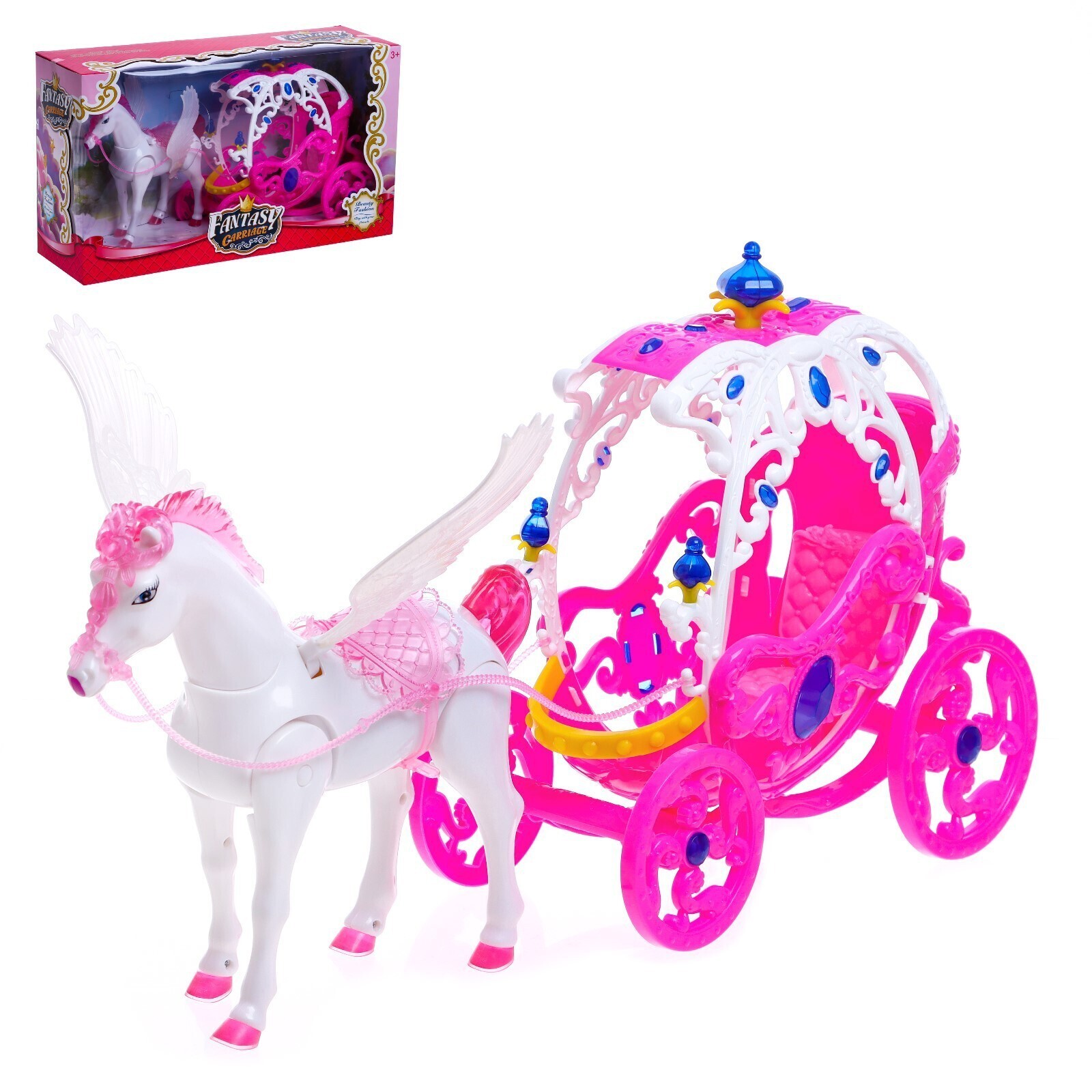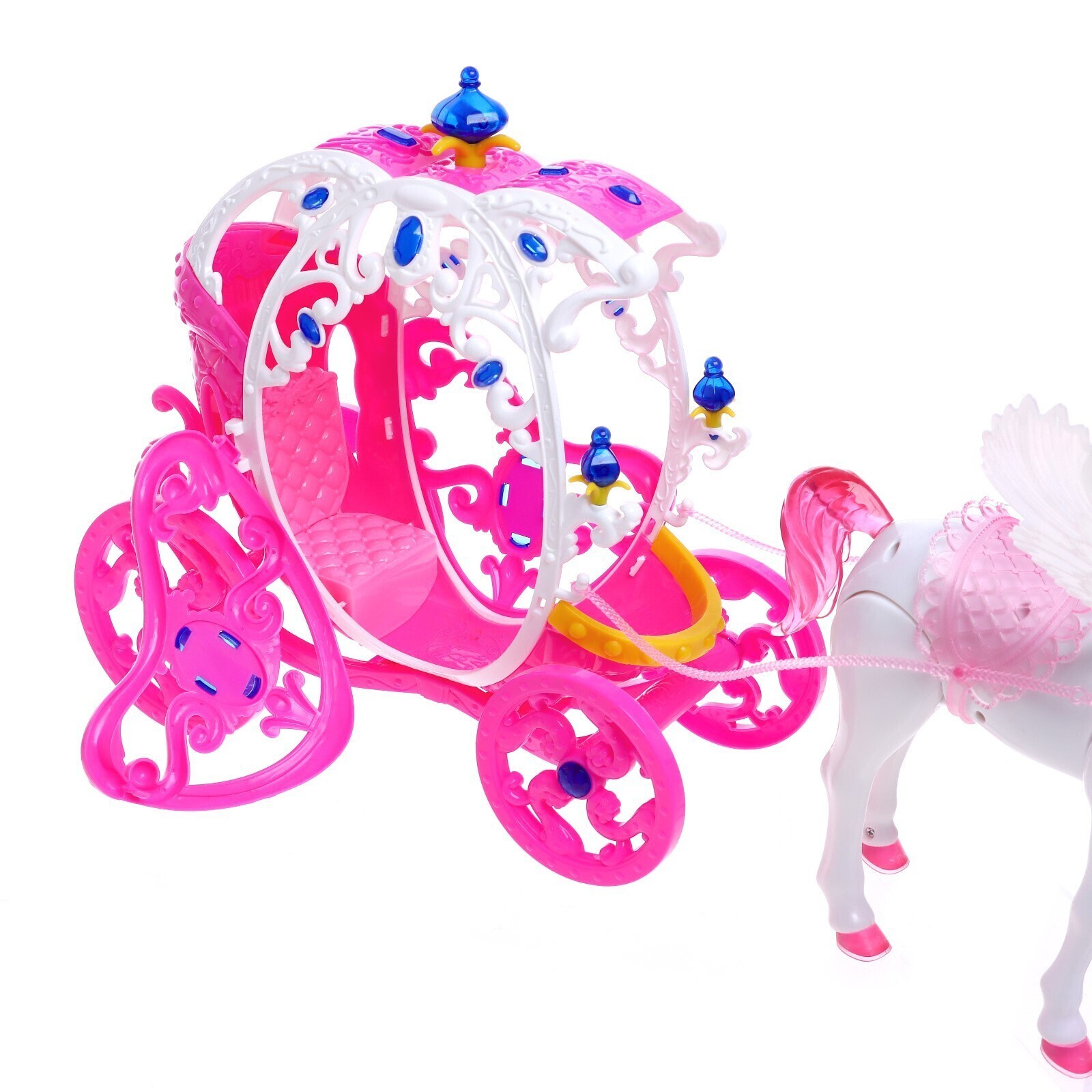 Каждая принцесса заслуживает свою карету! Особенно, если это сказочный набор с запряжённой лошадкой! В таком транспорте можно отправиться на бал или даже в волшебное путешествие.