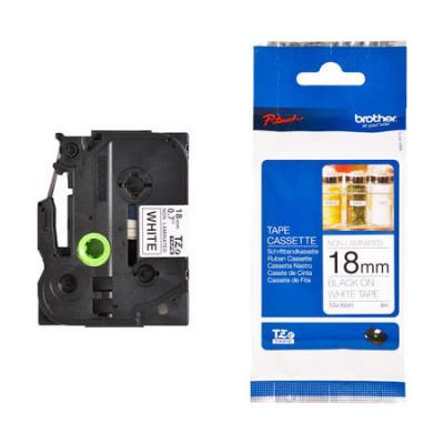 - Описание Лента для печати наклеек 18-миллиметровая неламинированная лента (черный на белом фоне), 8 м. Кассеты с лентой TZe Brother гарантируют безупречную работу принтеров для печати наклеек P-touch, обеспечивая профессиональное качество печатных материалов.