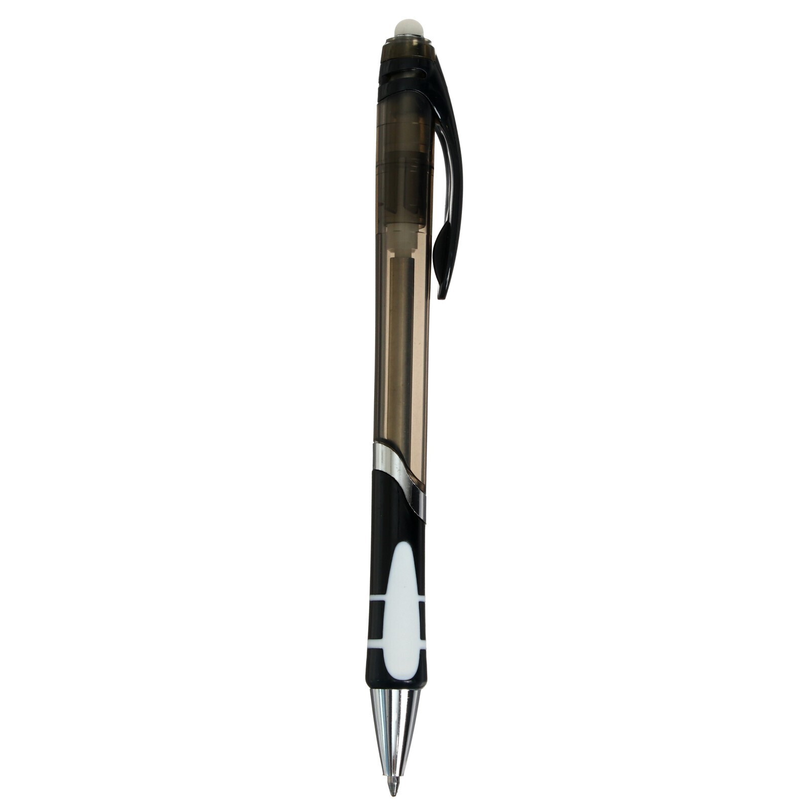 Ручка шариковая со стираемыми чернилами, линия 0,8 мм, автоматическая, стержень синий, цвет корпуса черный тонированый, с резиновым держателем