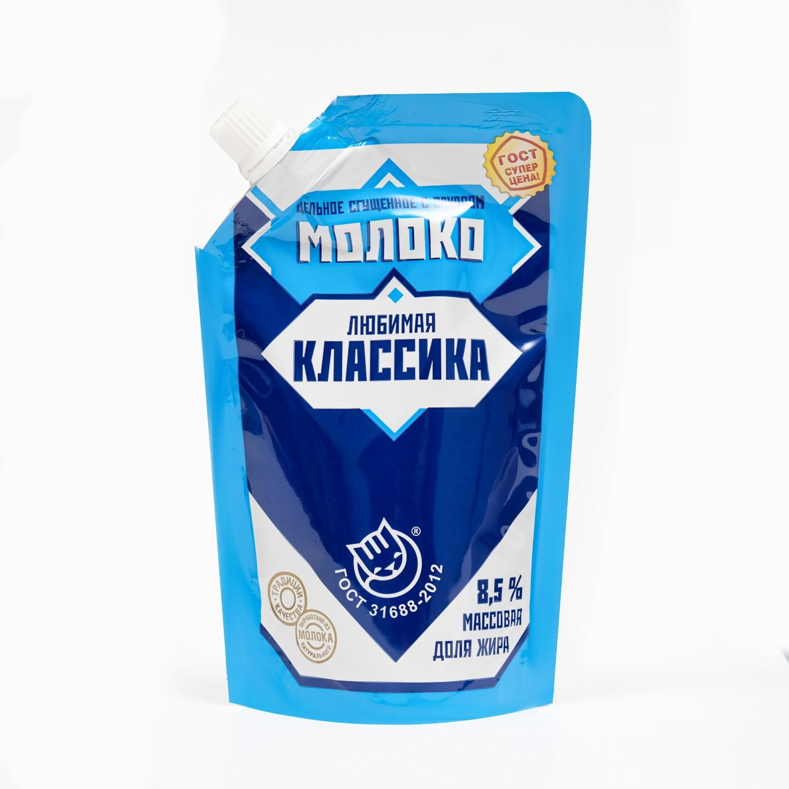 Молоко цельное сгущенное с сахаром "Любимая классика" ГОСТ дой-пак 270г