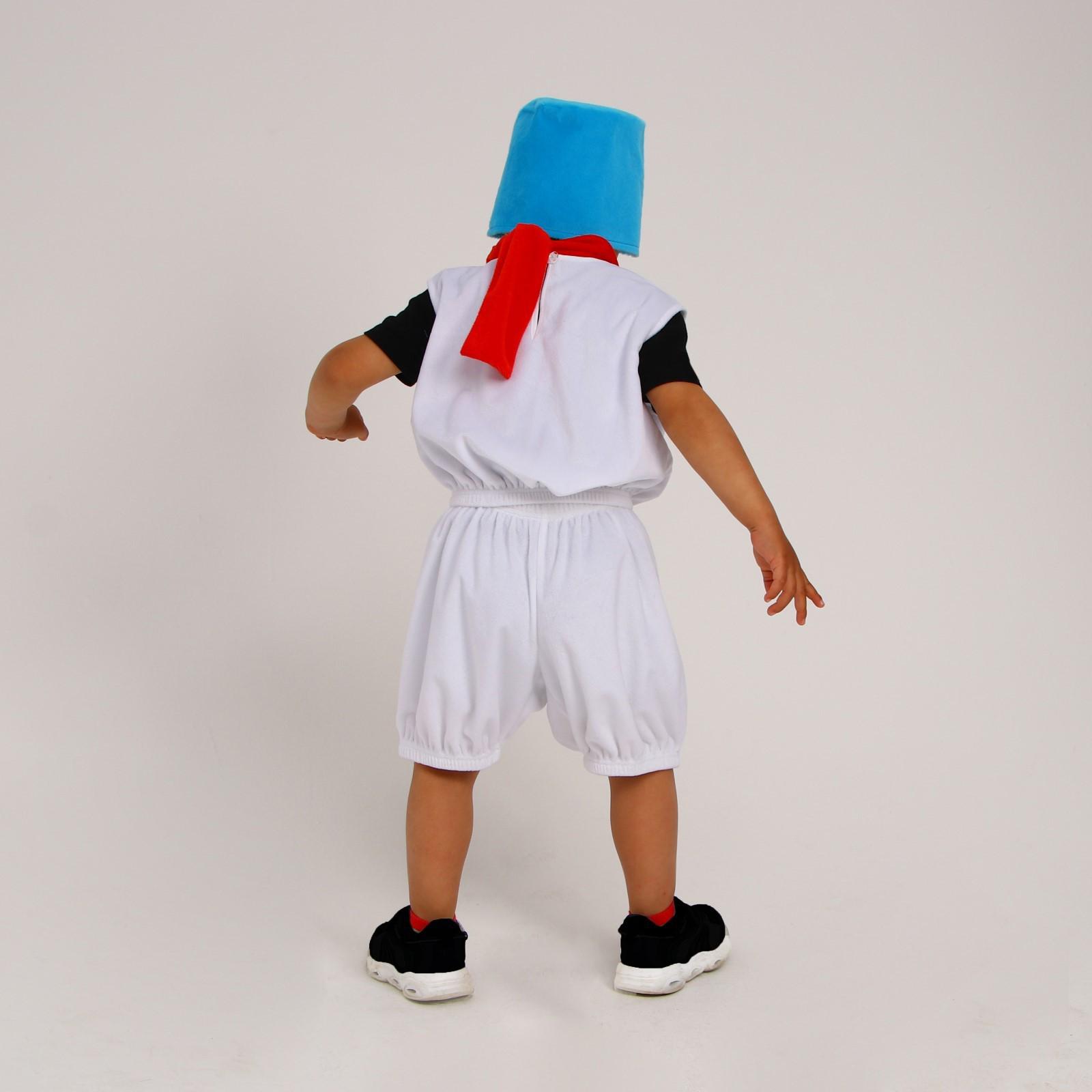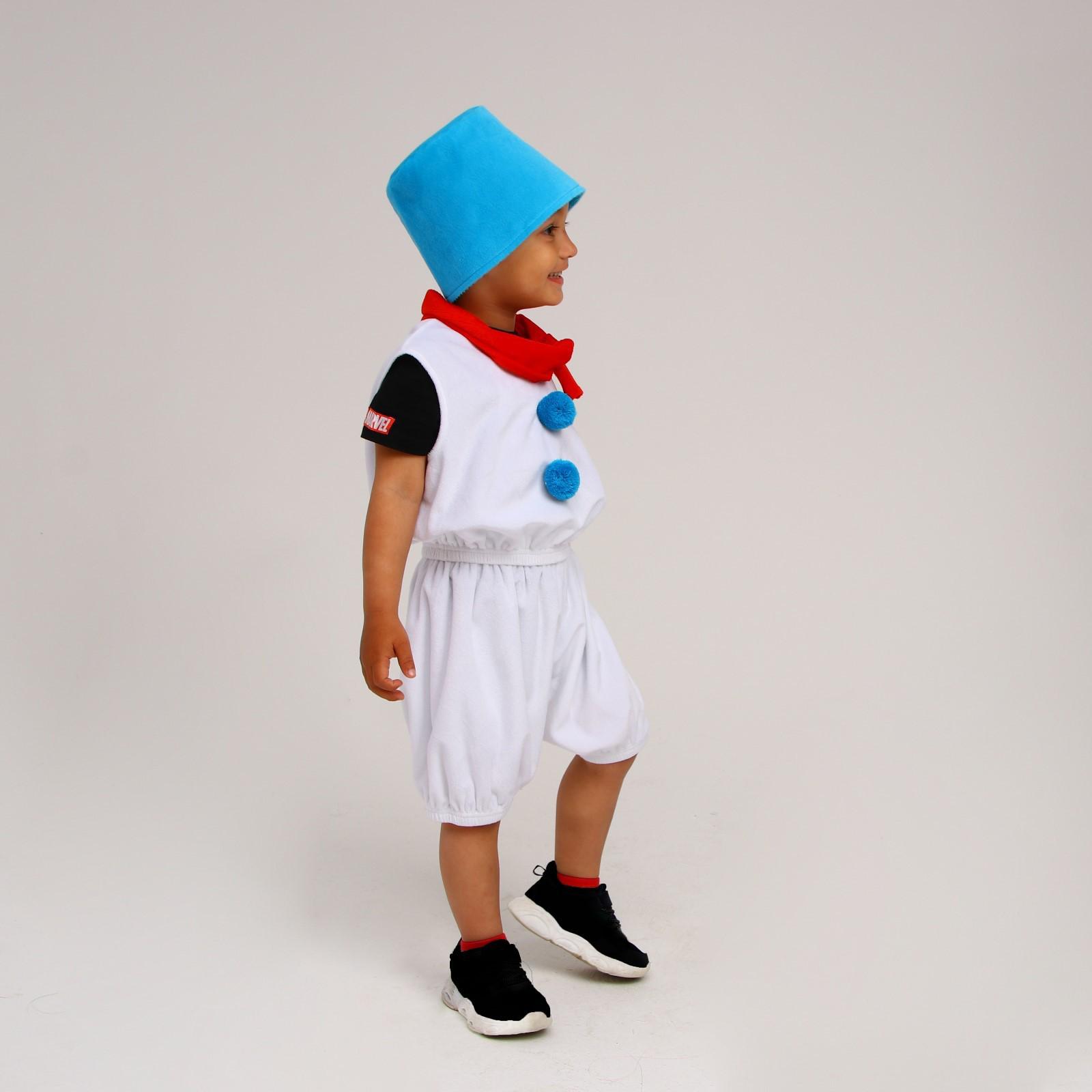 Карнавальный костюм Снеговик плюшевый с голубым ведром,бермуды,жилет,шарф,ведро,р-р30,р110-1