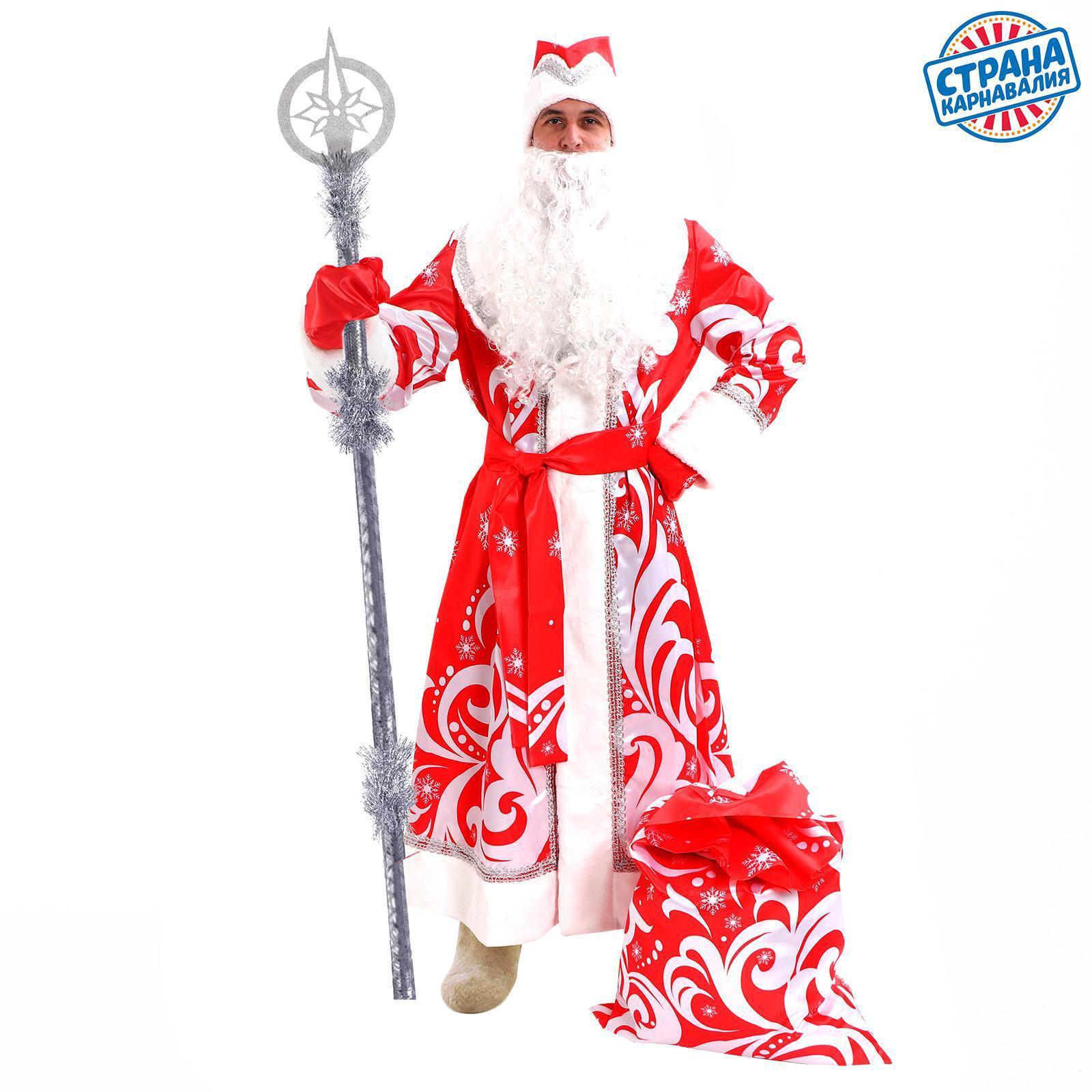 Карнавальный костюм «Дед Мороз», атлас, принт «Метель», р. 60-62, рост 180 см