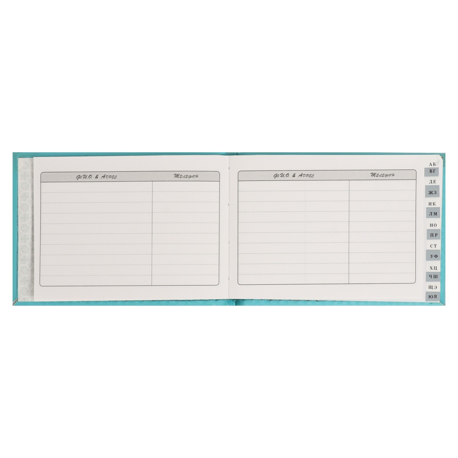 Записная книжка 115 х 80 мм, 48 листов "Винер", твёрдая обложка с поролоном, бирюзовый, с ламинированной алфавитной вырубкой