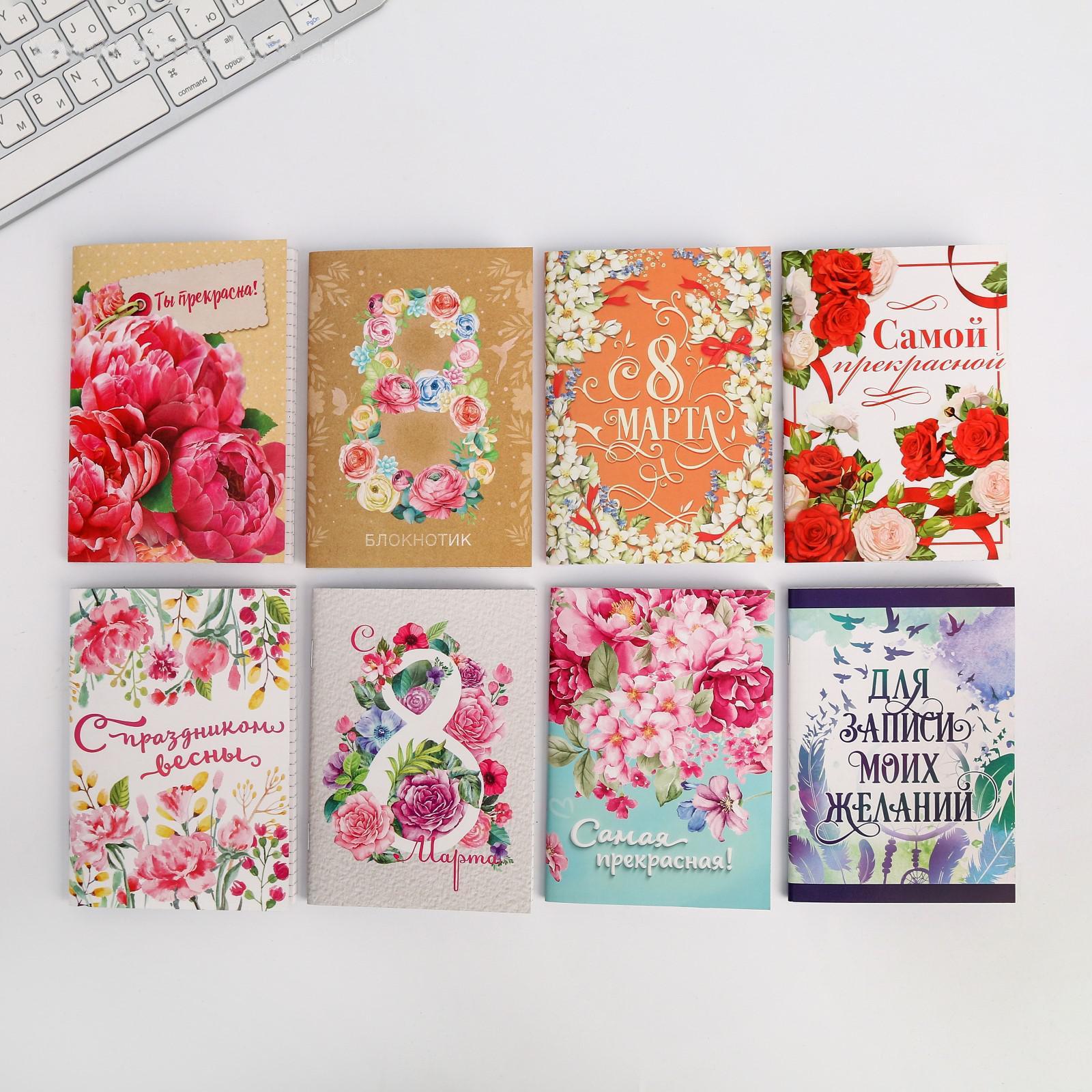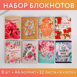 Набор в шоу-боксе «К 8 марта»: 8 блокнотов А6 на скрепке, 32 листа