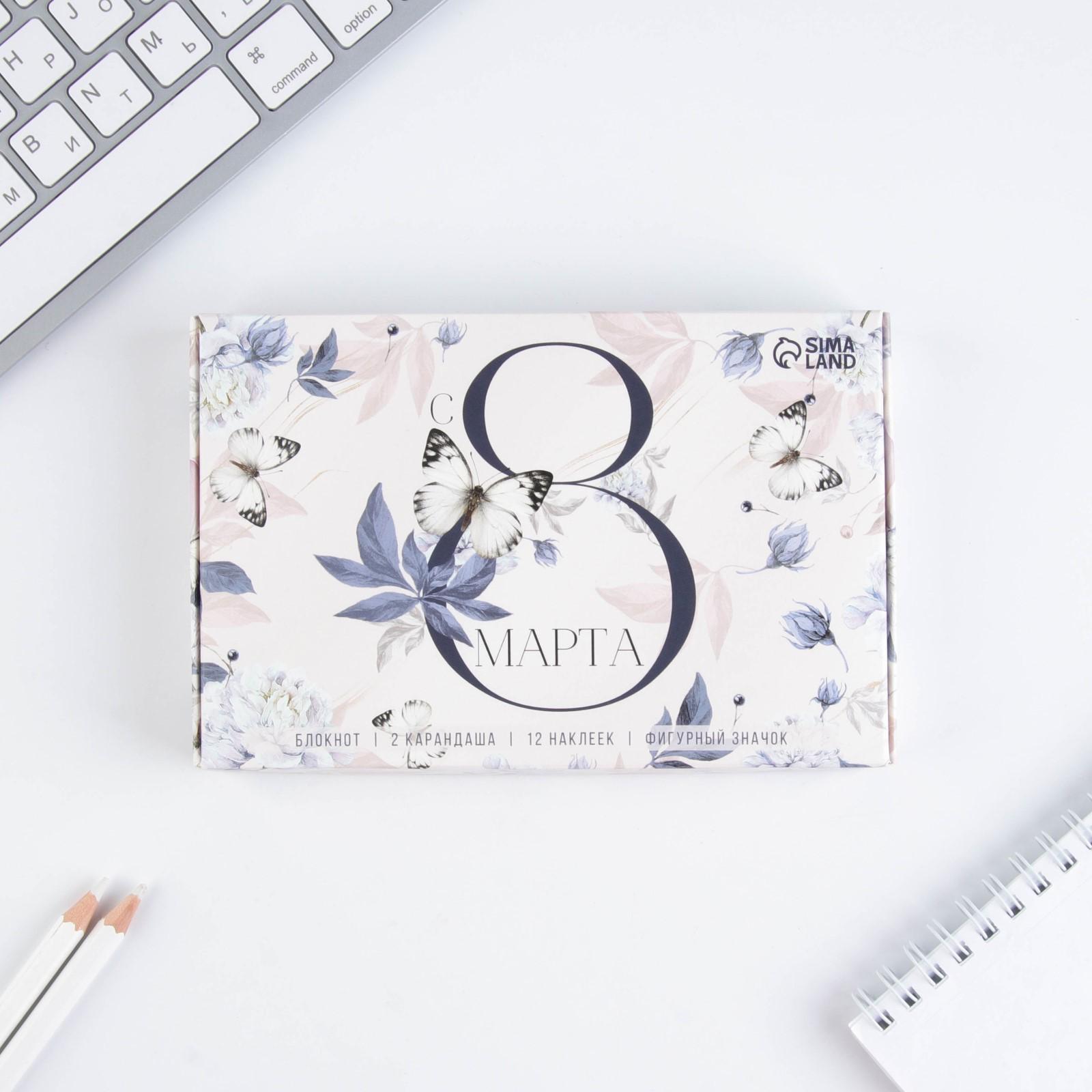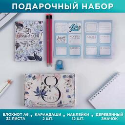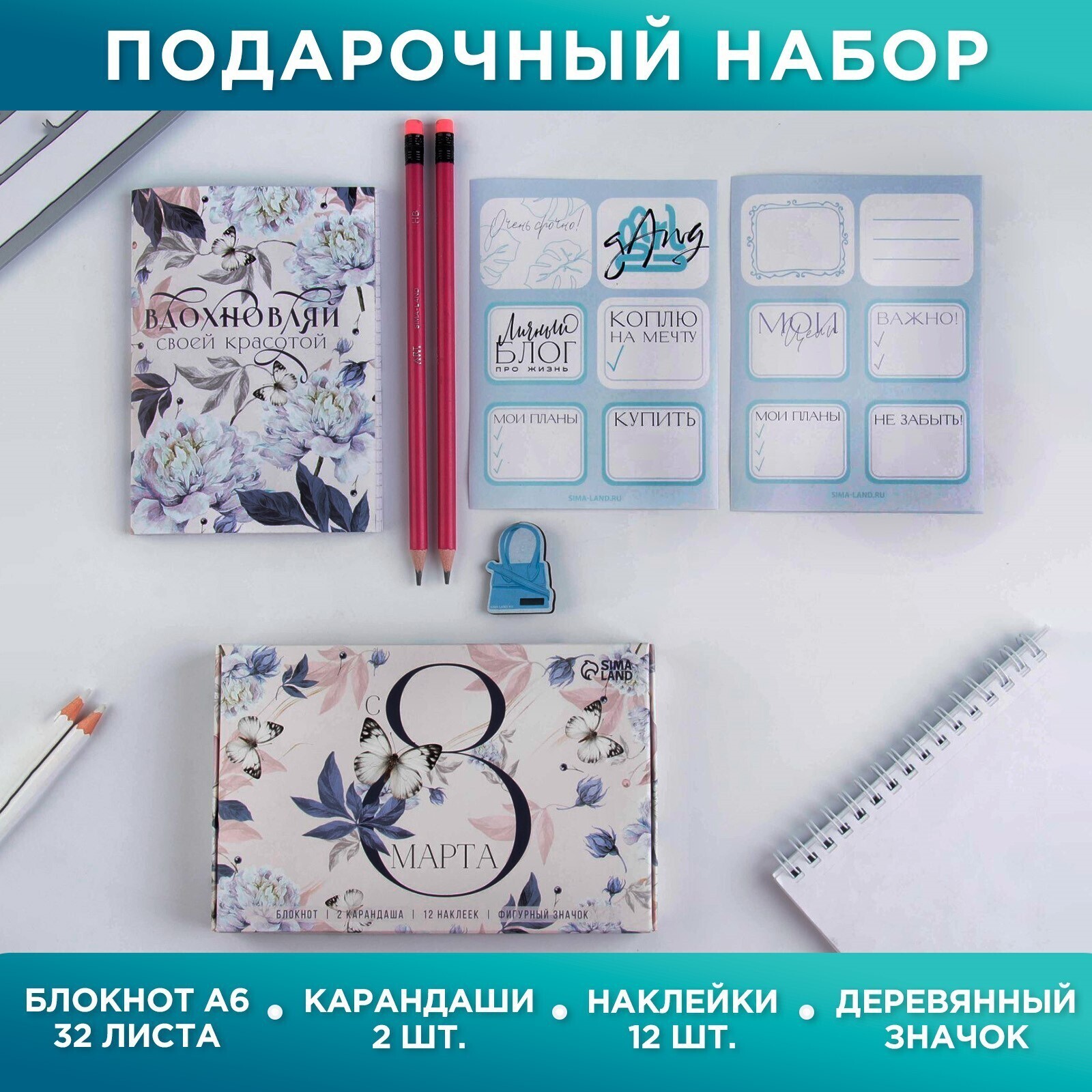 Подарочный набор «8 марта» блокнот А5 32 листа, значок, наклейки и карандаши 2 шт