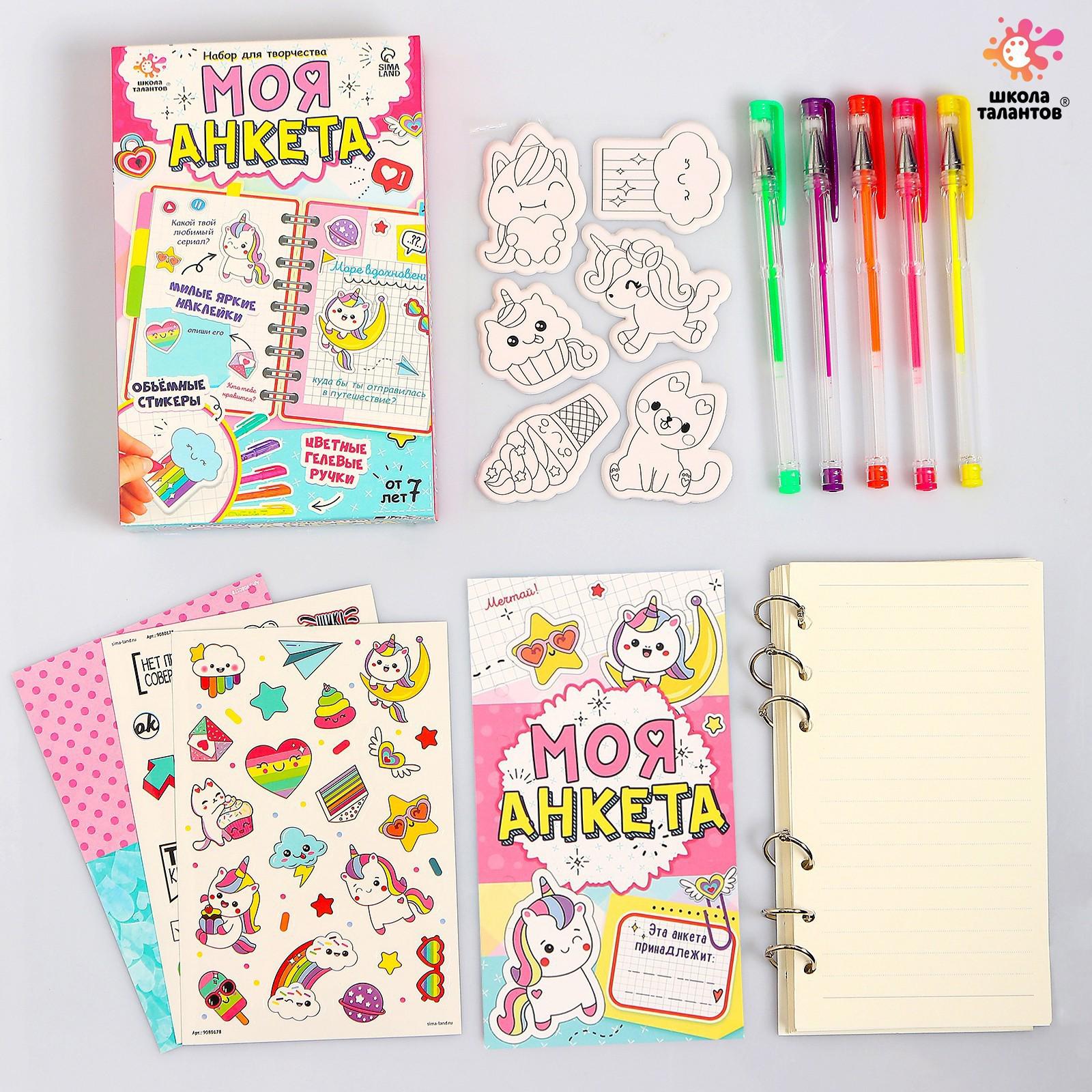 Ваша малышка любит заполнять анкеты, брать интервью у своих друзей и красиво оформлять свои записи? Тогда ей точно понравится этот набор для творчества!