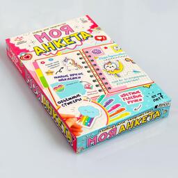 С таким набором девочка сможет оформить уникальную анкету, которую будет давать на заполнение своим друзьям. Скорее берите цветные ручки и начинайте разрисовывать титульную страничку и украшайте наклейками! Будет весело!