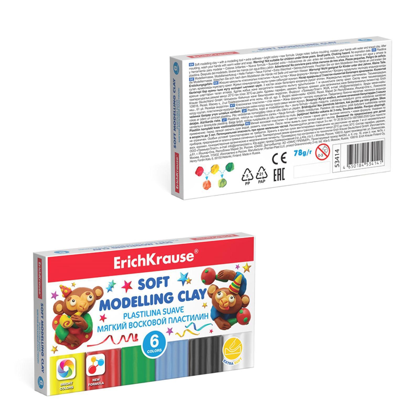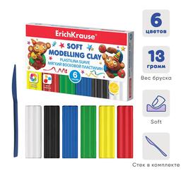Пластилин 6 цветов 78г, ErichKrause со стеком, мягкий (восковой)