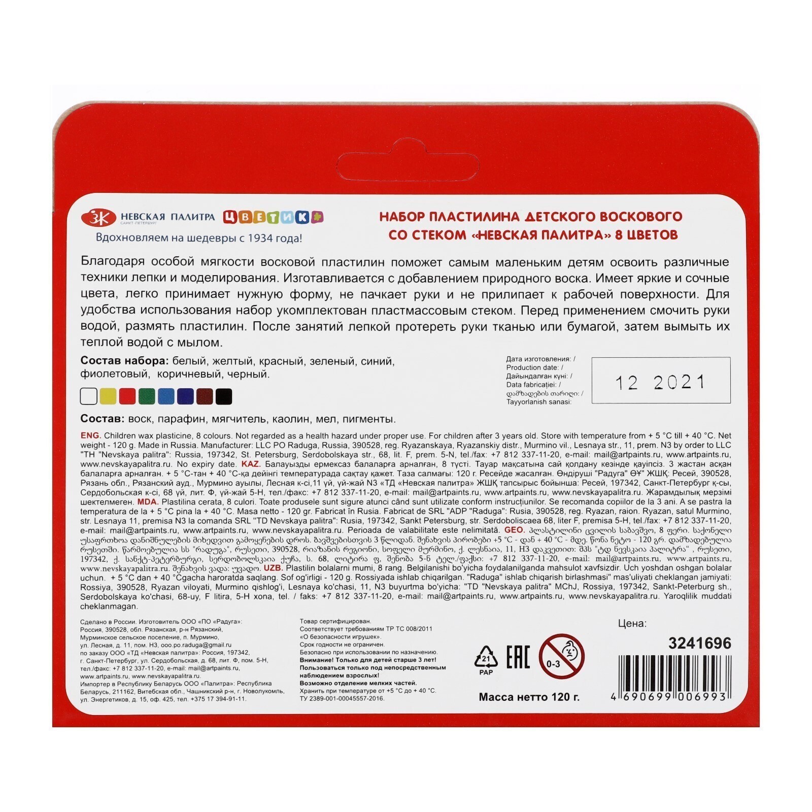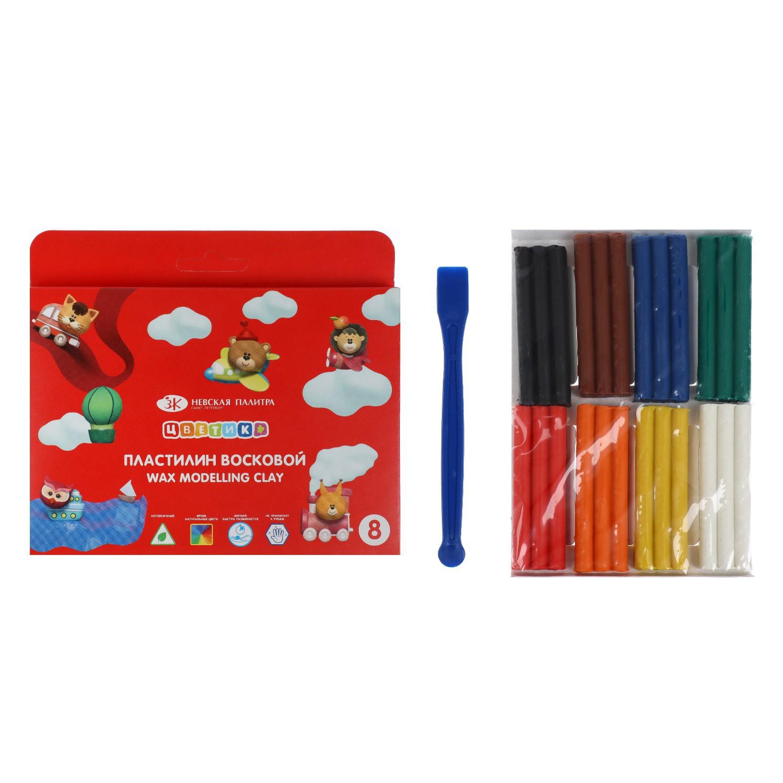 Набор пластилина воскового детского со стеком. Благодаря особой мягкости восковой пластилин поможет самым маленьким детям освоить различные техники лепки и моделирования. Изготавливается с добавлением природного воска. Имеет яркие и сочные цвета, легко принимает нужную форму, не пачкает руки и не прилипает к рабочей поверхности. Для удобства использования набор укомплектован пластмассовым стеком. Перед применением смочить руки теплой водой. После занятий лепкой протереть руки тканью или бумагой, затем вымыть их теплой водой с мылом.