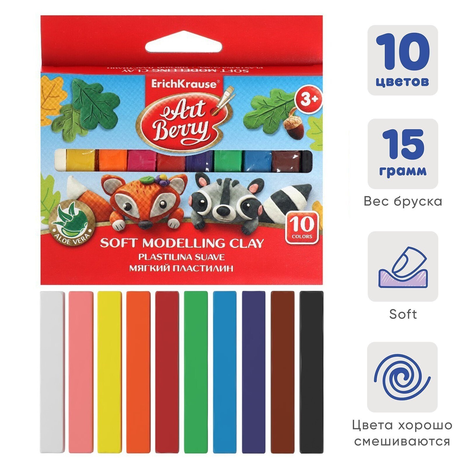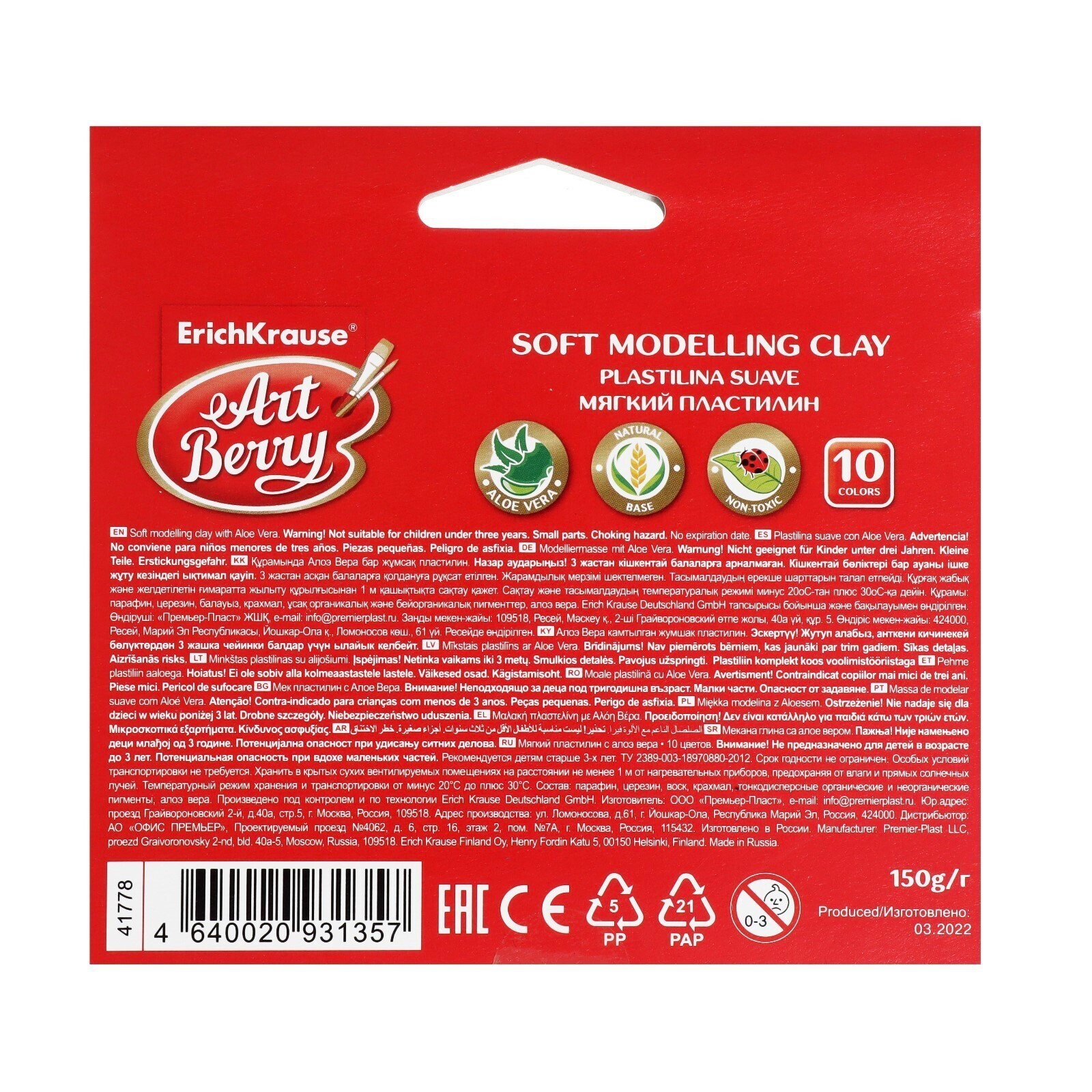 Пластилин мягкий (восковой), 10 цветов, 150 г, ErichKrause ArtBerry премиум, с Алоэ Вера, картон, с европодвесом