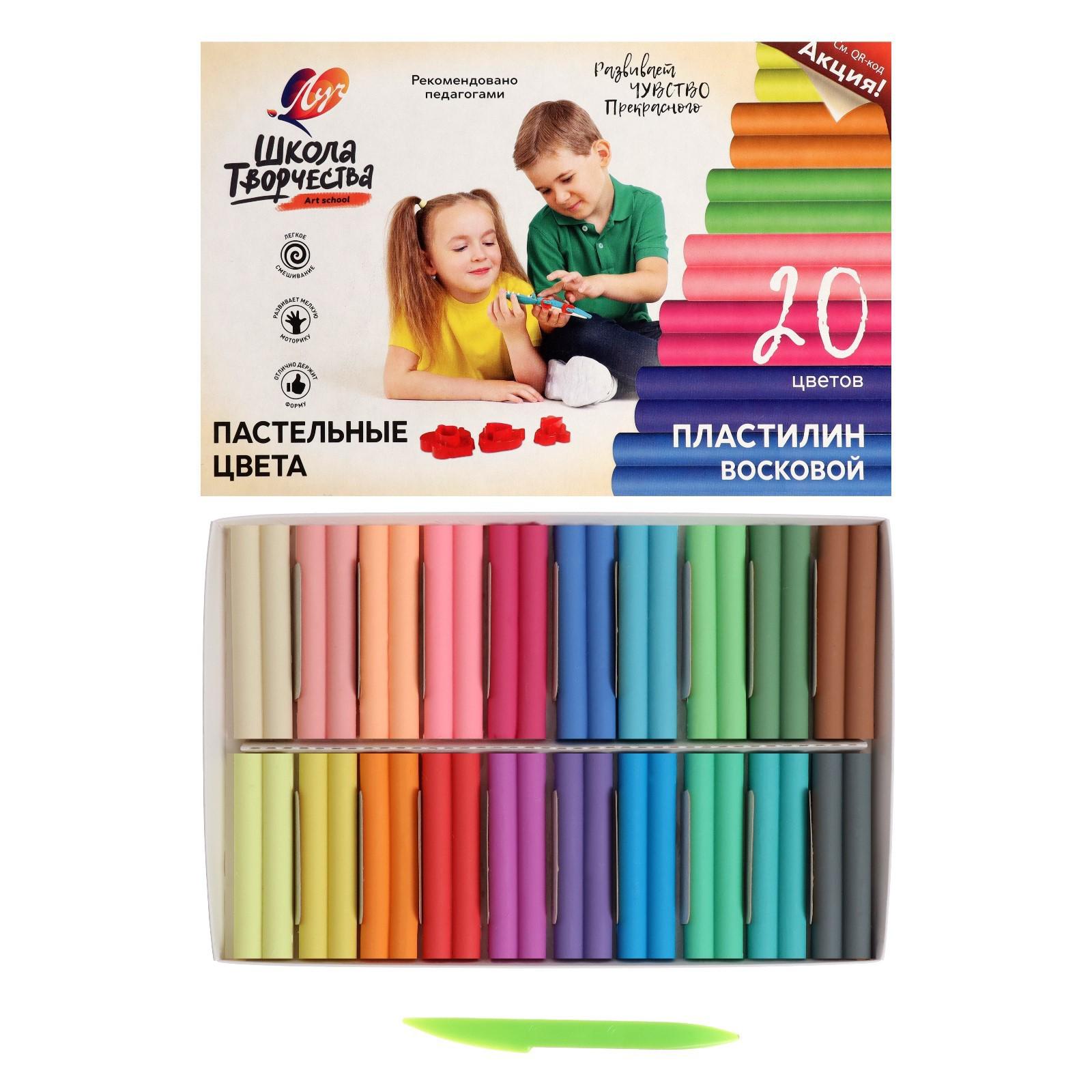 Пластилин мягкий (восковой), 20 цветов, 240 г, «школа творчества», микс