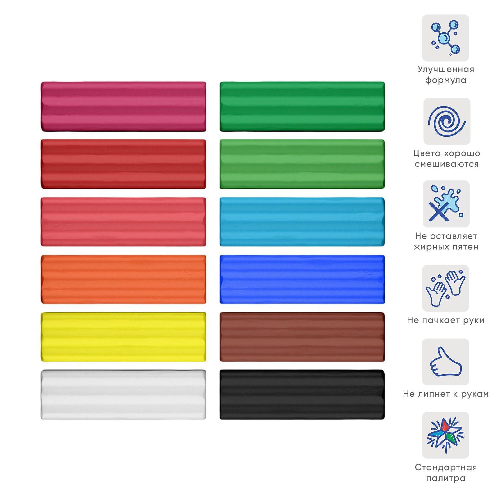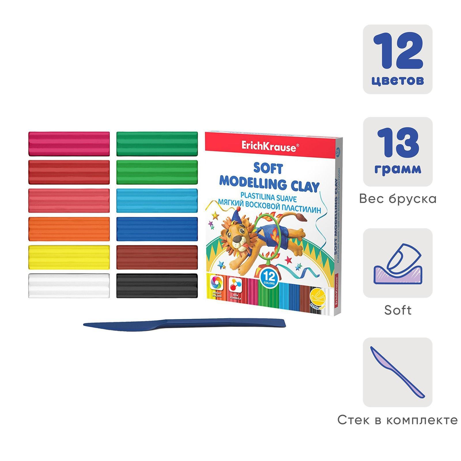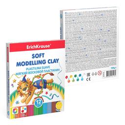 Пластилин мягкий (восковой), 12 цветов, 156 г, ErichKrause, картон, со стеком