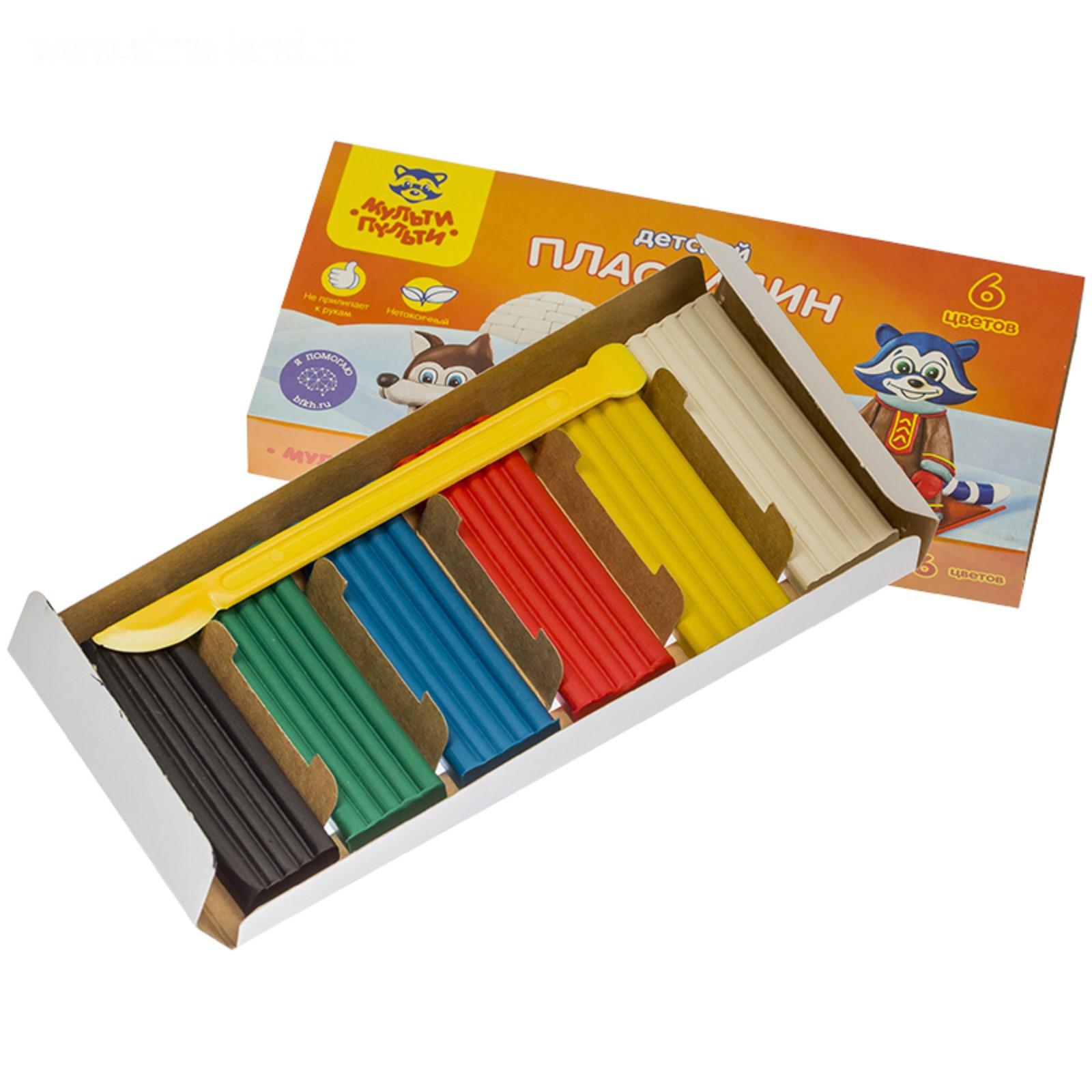 Пластилин 6 цветов "Мульти-пульти", "Енот на Аляске", стек, картонная упаковка, 90 г