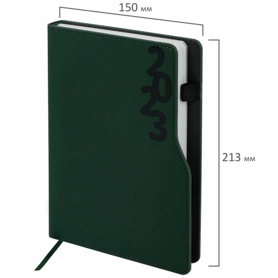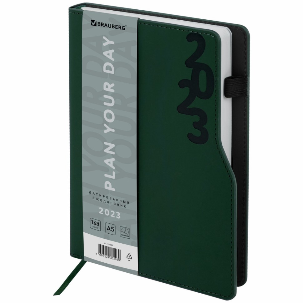 Нарушена упаковка! <370368> Ежедневник датированный 2023 А5 138x213 мм BRAUBERG "Up", под кожу софт-тач, зеленый, 114086