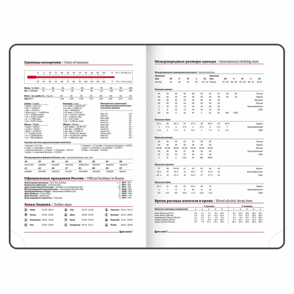 Заводская упаковка нарушена или отсутствует. Товар НОВЫЙ, в полной комплектации. / Датированный ежедневник BRAUBERG "Up" выполнен в оригинальном стиле. Обложка из материала "под кожу" с покрытием "SoftTouch" обеспечивает мягкий, бархатистый тактильный эффект, приятный на ощупь. Внутренний блок включает 168 листов белой бумаги плотностью 70 г/м2. Каждая страничка имеет перфорированный угол. Благодаря стандартному формату А5 (138х213 мм) ежедневник удобно использовать как в офисе, так и на выездных деловых встречах. Жесткая книжная обложка, прошитая по периметру, с текстурой под гладкую кожу и эффектом софт-тач. Материал обложки подходит для горячего тиснения. Для удобства пользования ежедневник снабжен держателем для ручки. Форзац ежедневника представлен картами мира и России. Дополнением является закладка-ляссе, с помощью которой при необходимости можно быстро открыть ежедневник на нужной странице. Помимо прочего, ежедневник снабжен обширным справочным материалом. Выполнен в благородном зеленом цвете. Датированный ежедневник BRAUBERG "Up" идеально подойдет для офисных работников и людей, занимающихся бизнесом, ценящих свое драгоценное время. Тип ежедневника: датированный. Серия: Up. Год: 2023. Формат: А5. Обложка: под гладкую кожу. Вид обложки: твердая. Количество листов: 168 шт.. Особенности: закладка-ляссе, перфорация уголков, поролоновая прослойка, скругленные углы, справочная информация, фиксатор для ручки. Тип застежки: нет. Основной цвет обложки: зеленый. Дополнительный цвет обложки: нет. Цвет среза: белый. Цвет внутреннего блока: белый. Плотность внутреннего блока: 70 г/м2. Тип крепления: сшивка. Печать блока: 2 краски. Подходит для персонализации: блинтовое тиснение, горячее тиснение, тиснение фольгой. Длина: 213 мм. Ширина: 138 мм Бренд - BRAUBERG. Производитель - Китай. Артикул - 114086. Штрихкод - 4606224352039