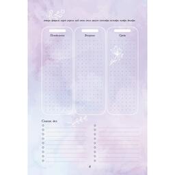 Чтобы внедрить эту систему в наше напряженное повседневное расписание, был разработан предлагаемый еженедельник: он поможет вам планировать не только личные, семейные и рабочие вопросы, но и постепенно, день за днем, укреплять свою нервную систему и повышать осознанность, тем самым делая вас стрессоустойчивее, радостнее и мудрее.