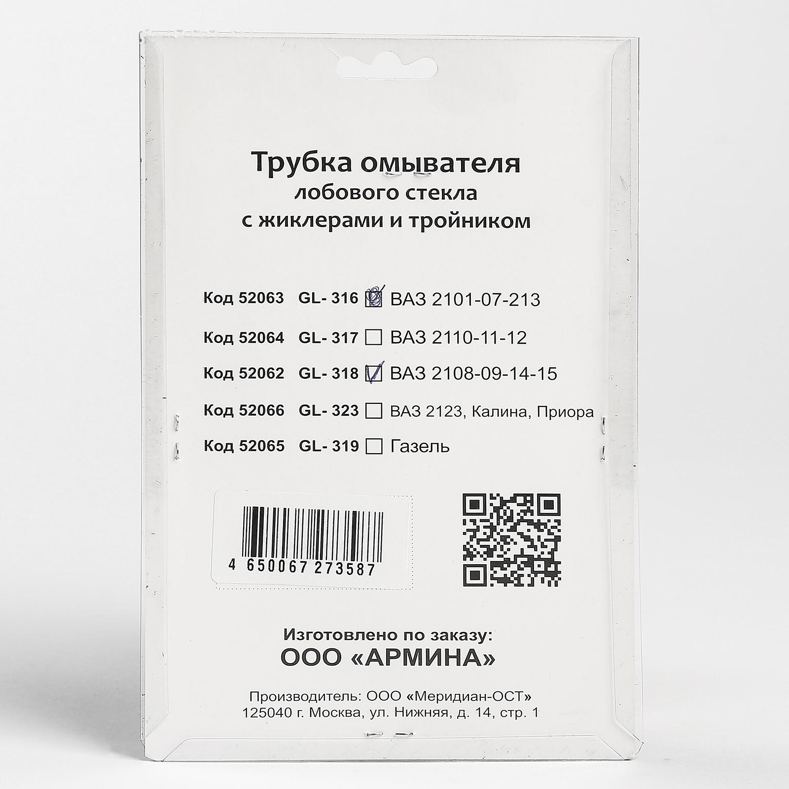 Трубка омывателя лобового стекла "ГЛАВДОР" с жиклерами и тройником, ВАЗ 2108-09-14-15