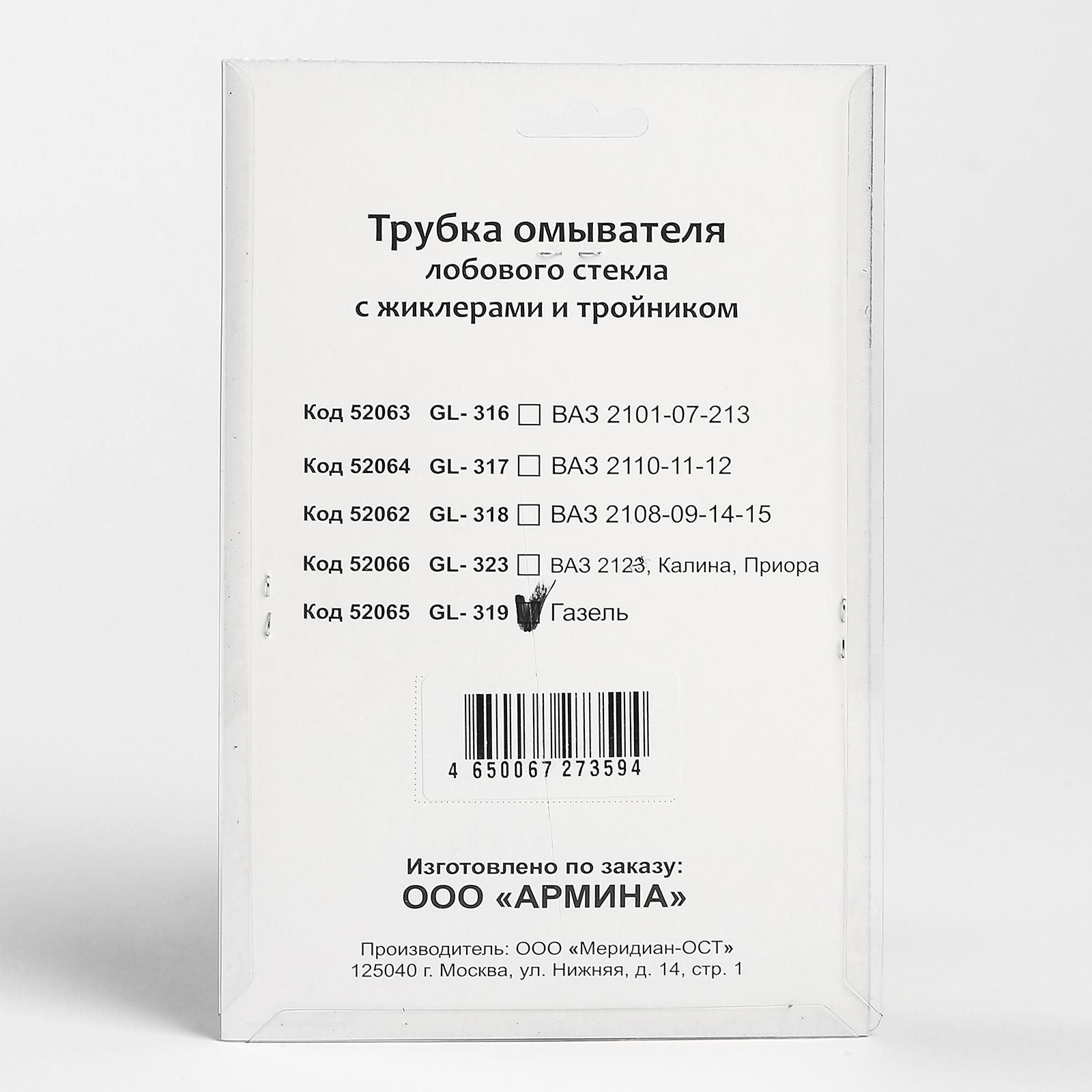 Трубка омывателя лобового стекла "ГЛАВДОР" с жиклерами и тройником, Газель