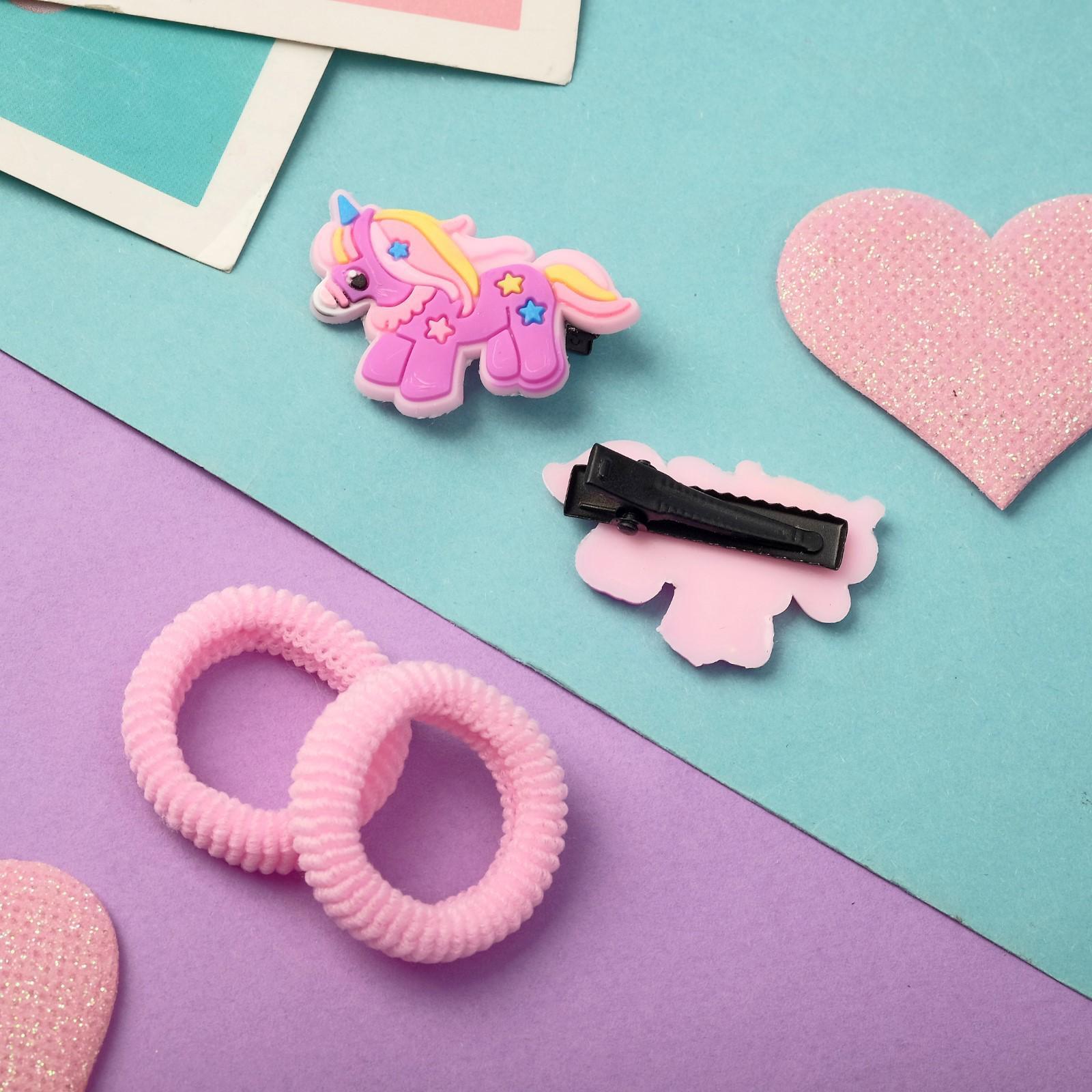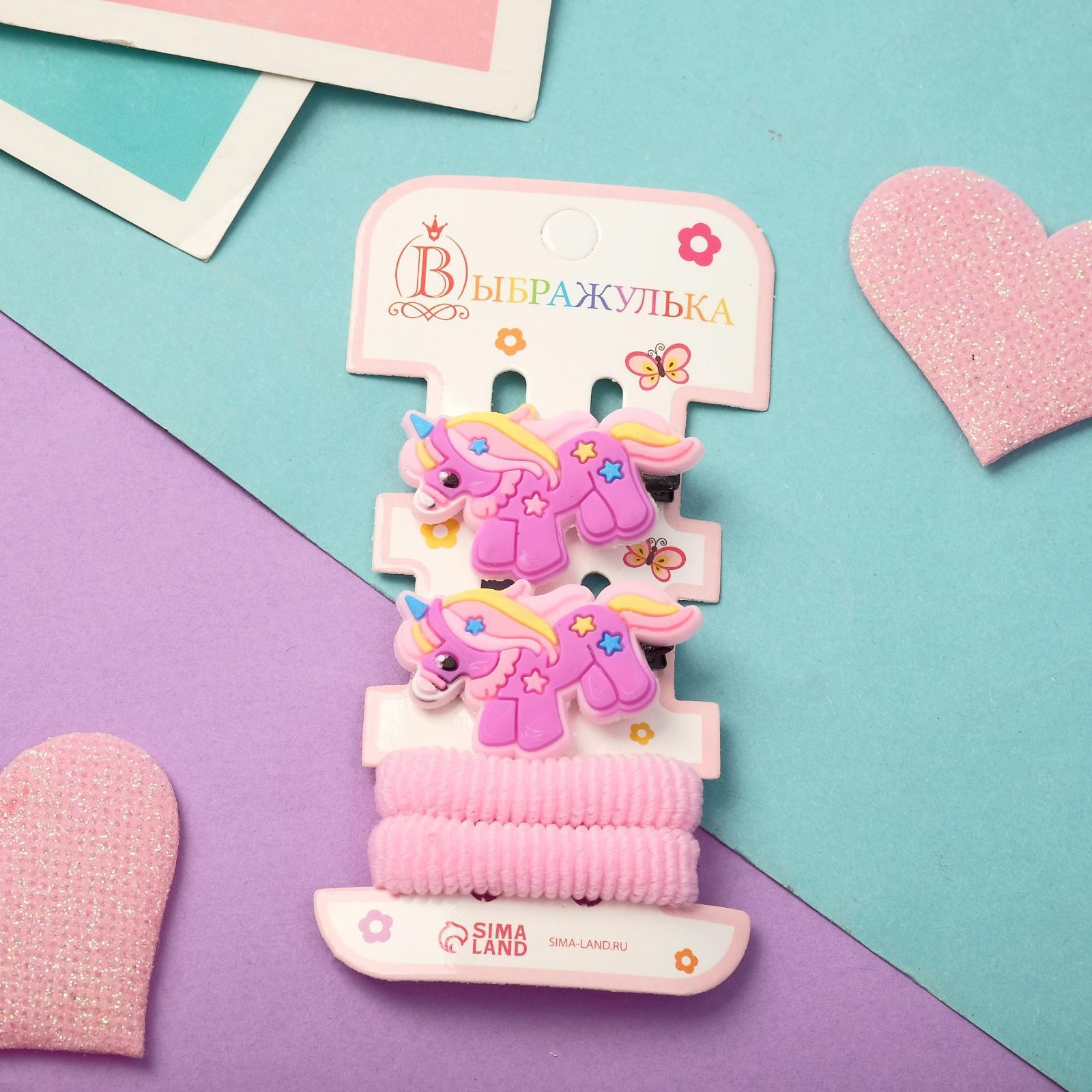 Набор для волос "Ариадна" (2 резинки, 2 зажима) единорог, розовый