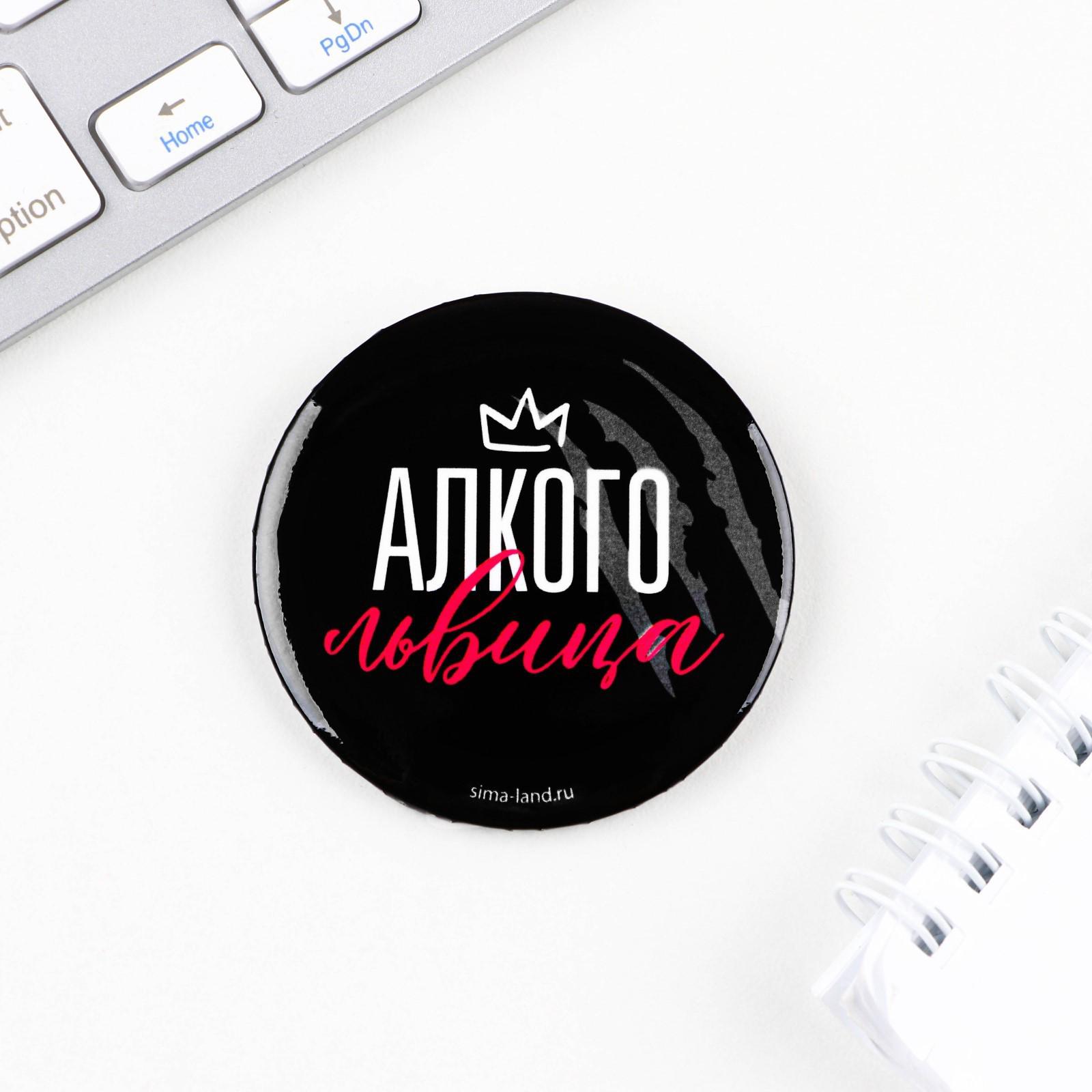 Значок закатной "Алкого-львица", 56 мм