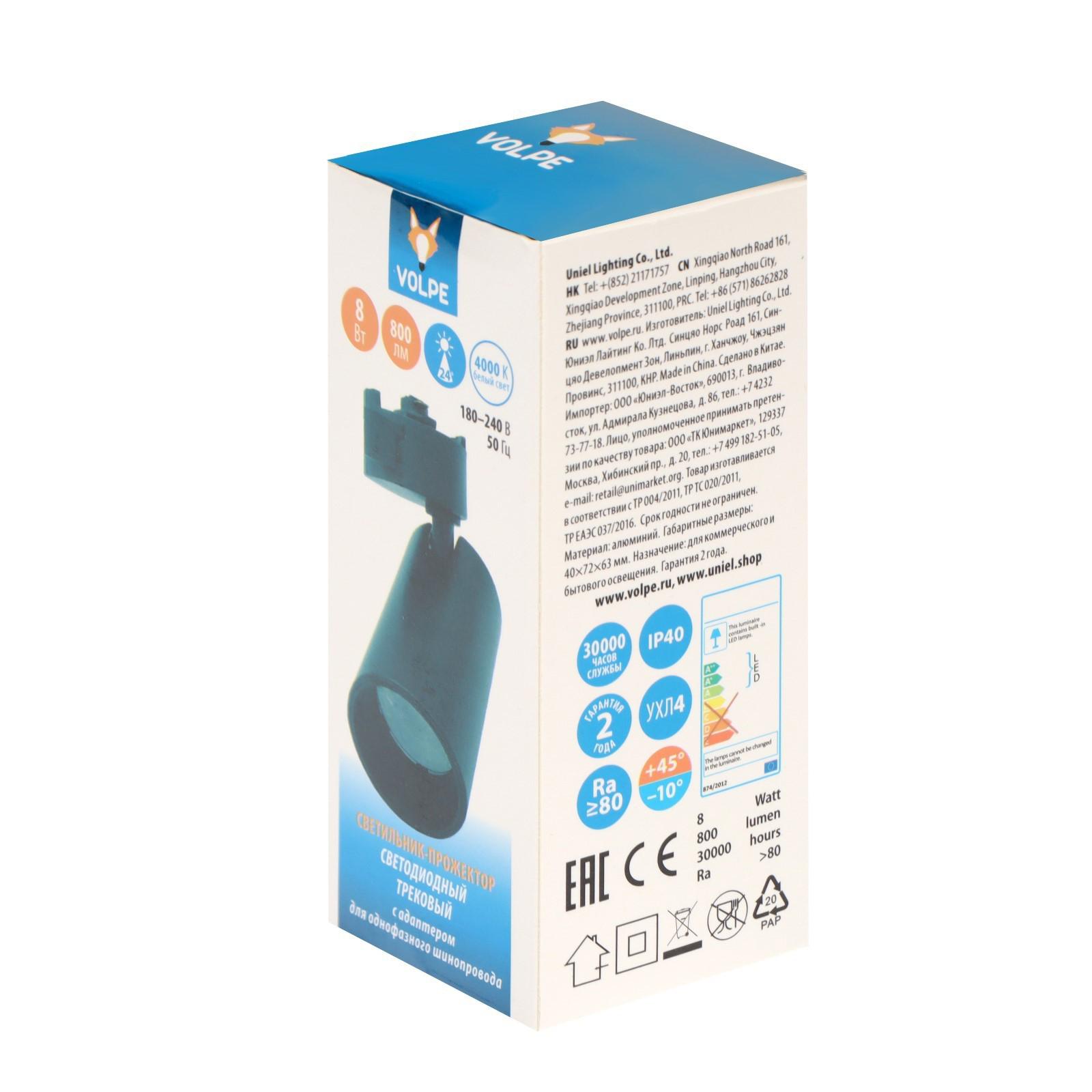 Трековый светодиодный светильник Volpe ULB-Q276, 8 Вт, 4000 К, 800 Лм, IP40, черный