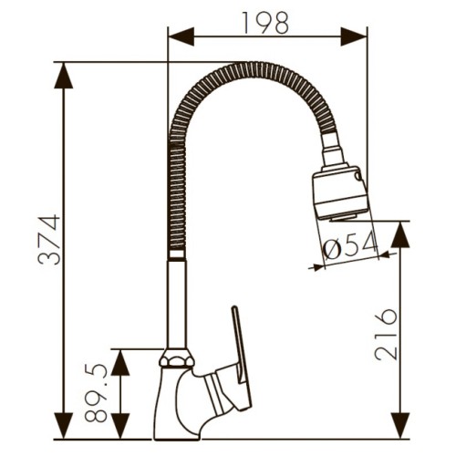 • Высота смесителя 374 мм