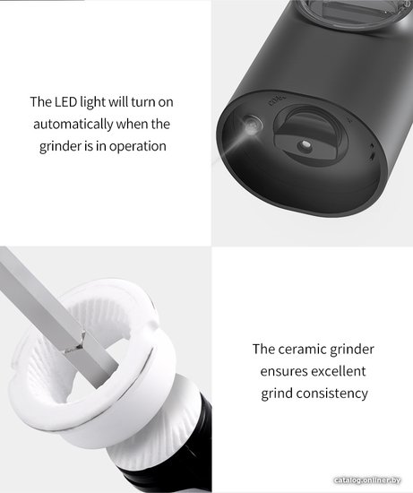 • Особенности регулировка степени помола, подсветка рабочей зоны