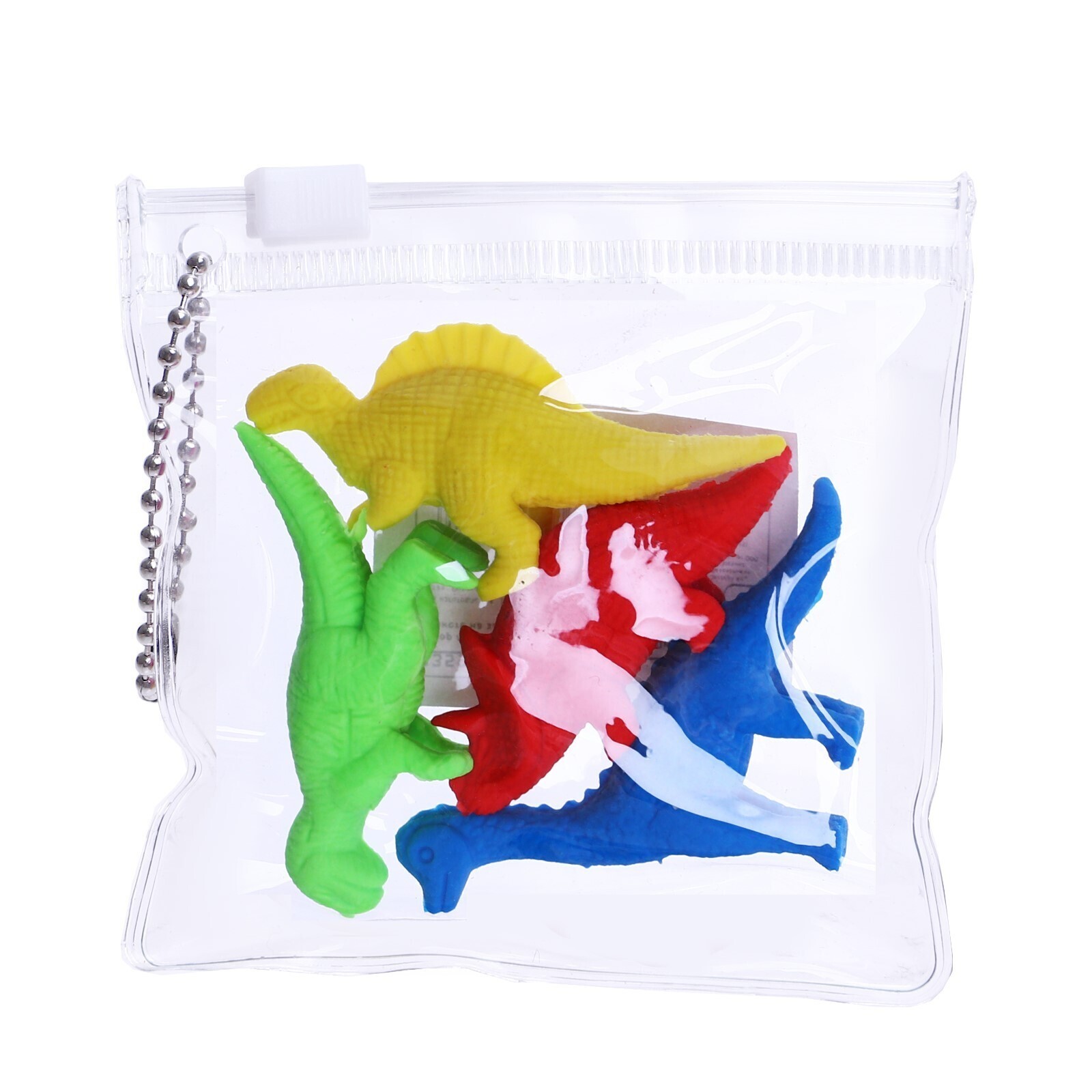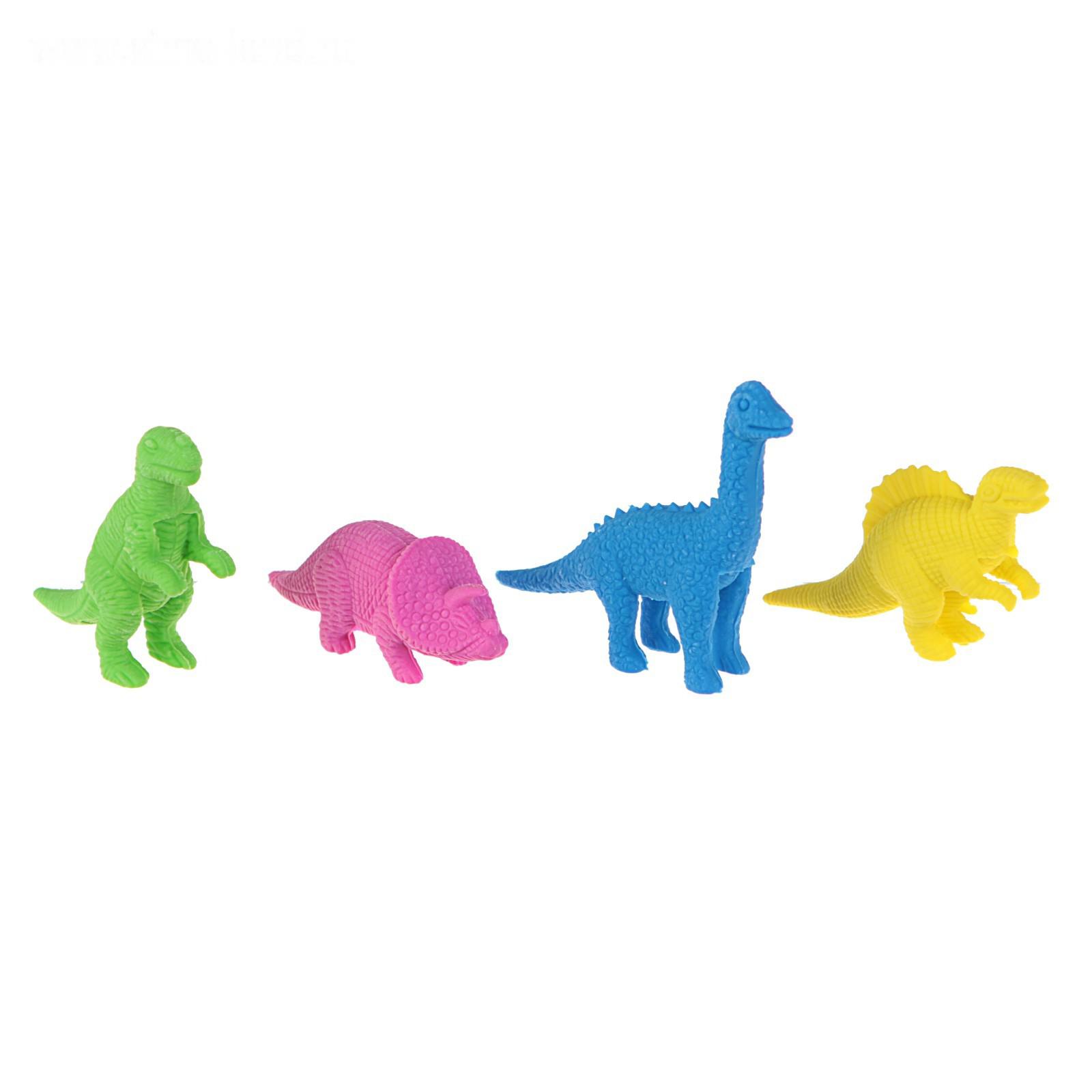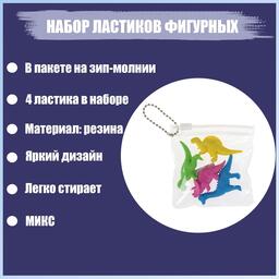 Набор ластиков фигурных 4 штуки "Динозавры" в пакете на зип-молнии (штрихкод на штуке) МИКС