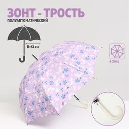 Зонт - трость полуавтоматический «Цветочки», 8 спиц, R = 51 см, цвет сиреневый