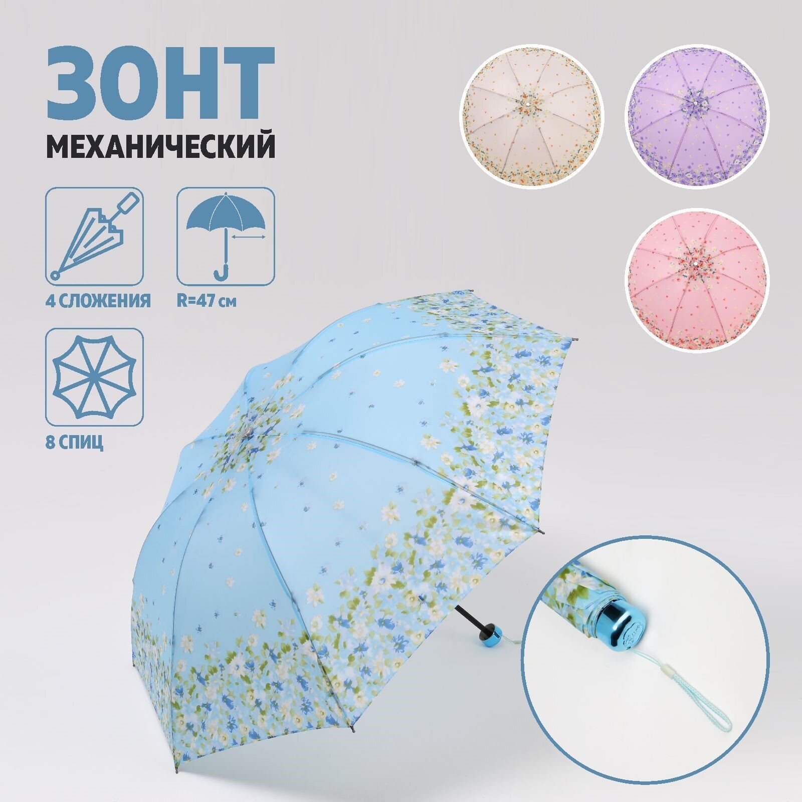Зонт механический «Цветочная фантазия», 4 сложения, 8 спиц, R = 47 см, цвет МИКС