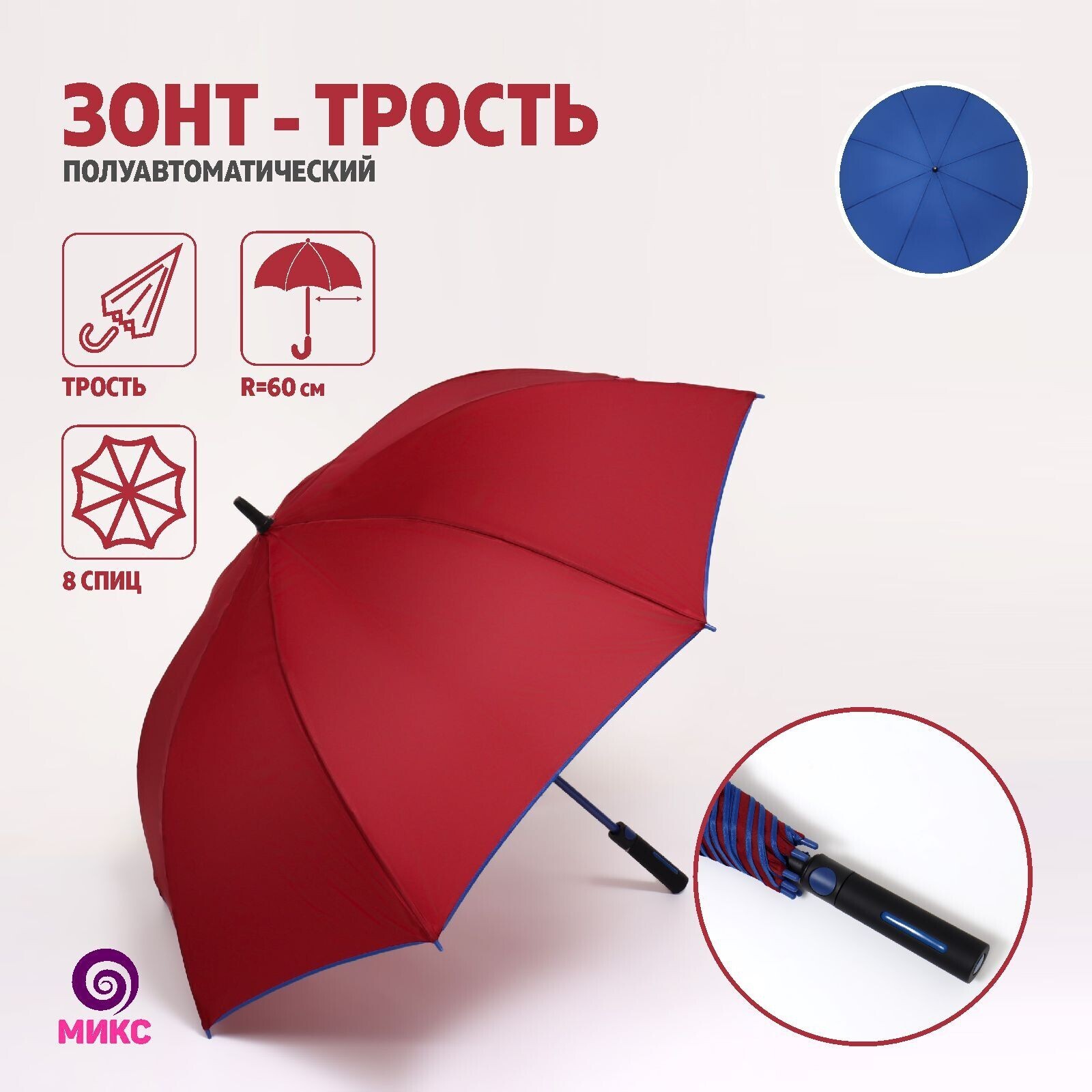 Зонт - трость полуавтоматический «Кант», 8 спиц, R = 60 см, ветроустойчивый, цвет МИКС