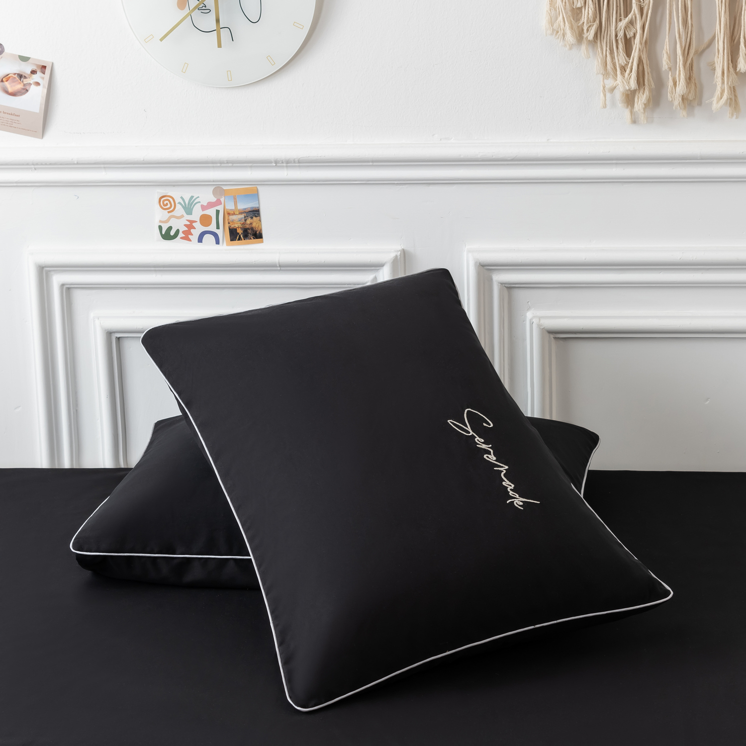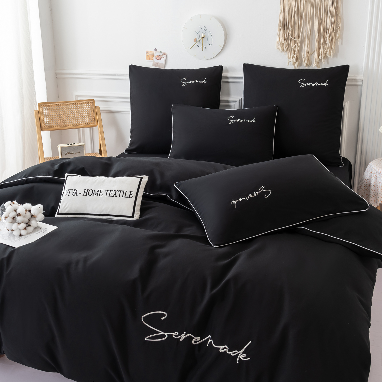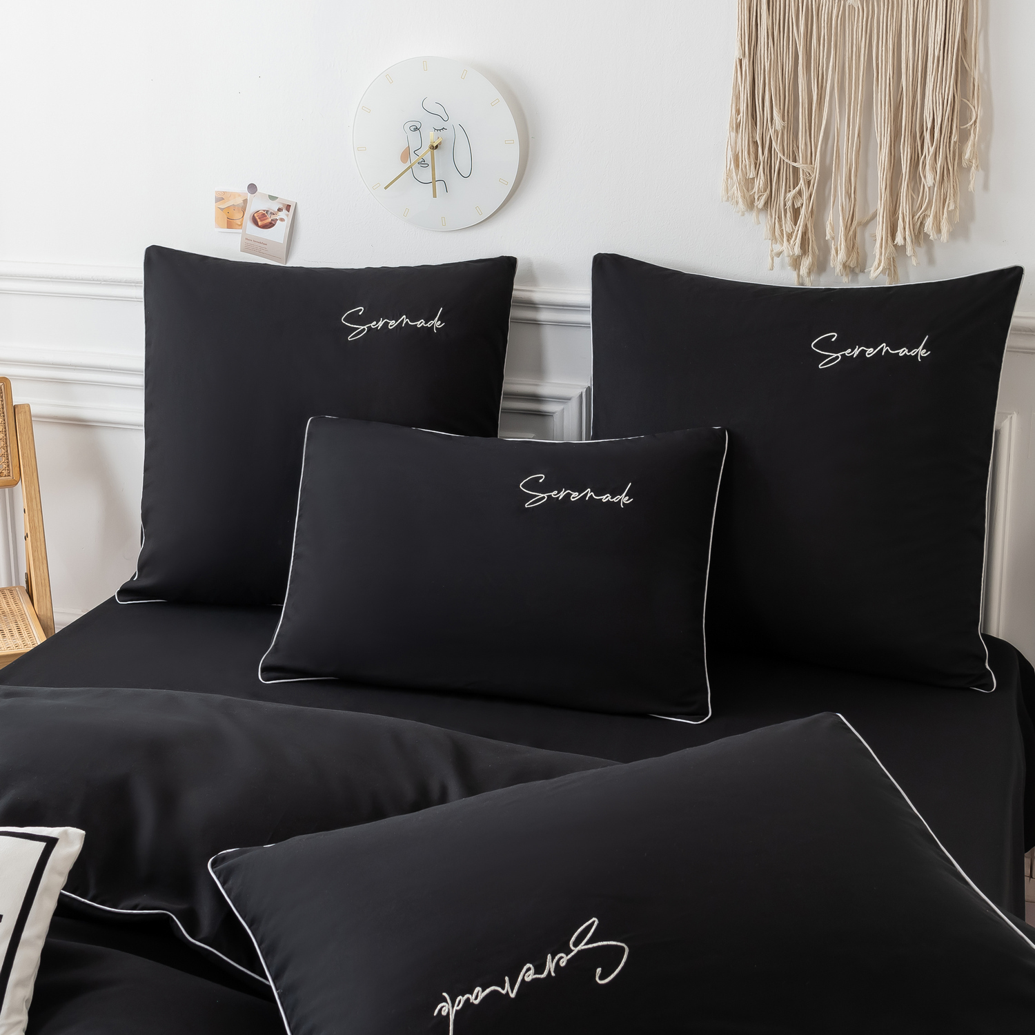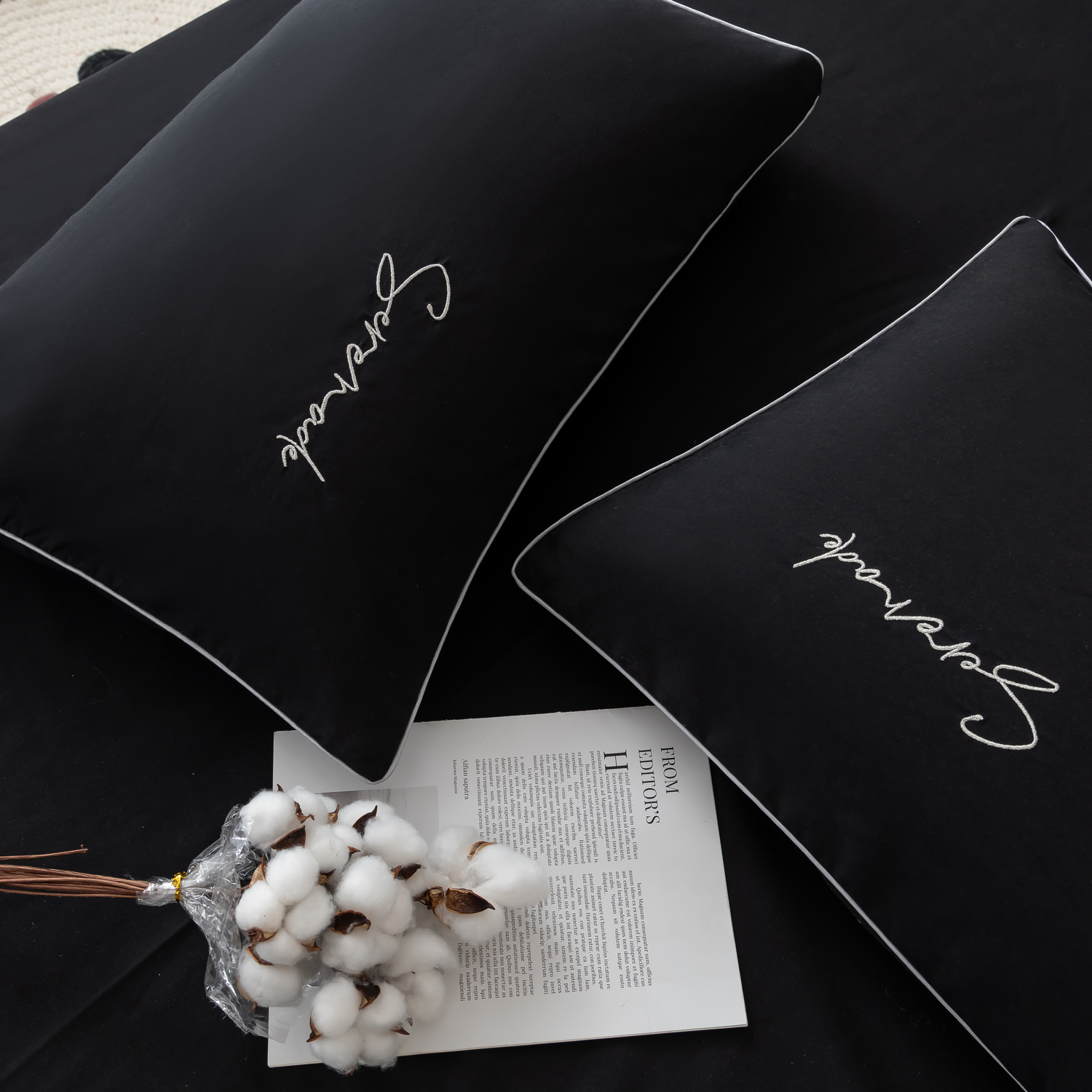 Описание товара Комплект постельного белья Однотонный Сатин Вышивка CH020 Дуэт Семейный 4 Наволочки