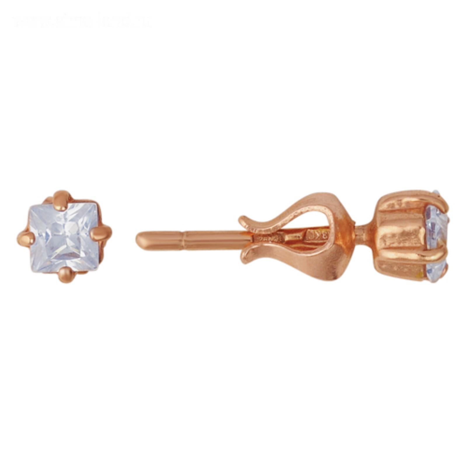 Пусеты "Классика" гвоздики, квадрат, розовое золочение, цвет белый