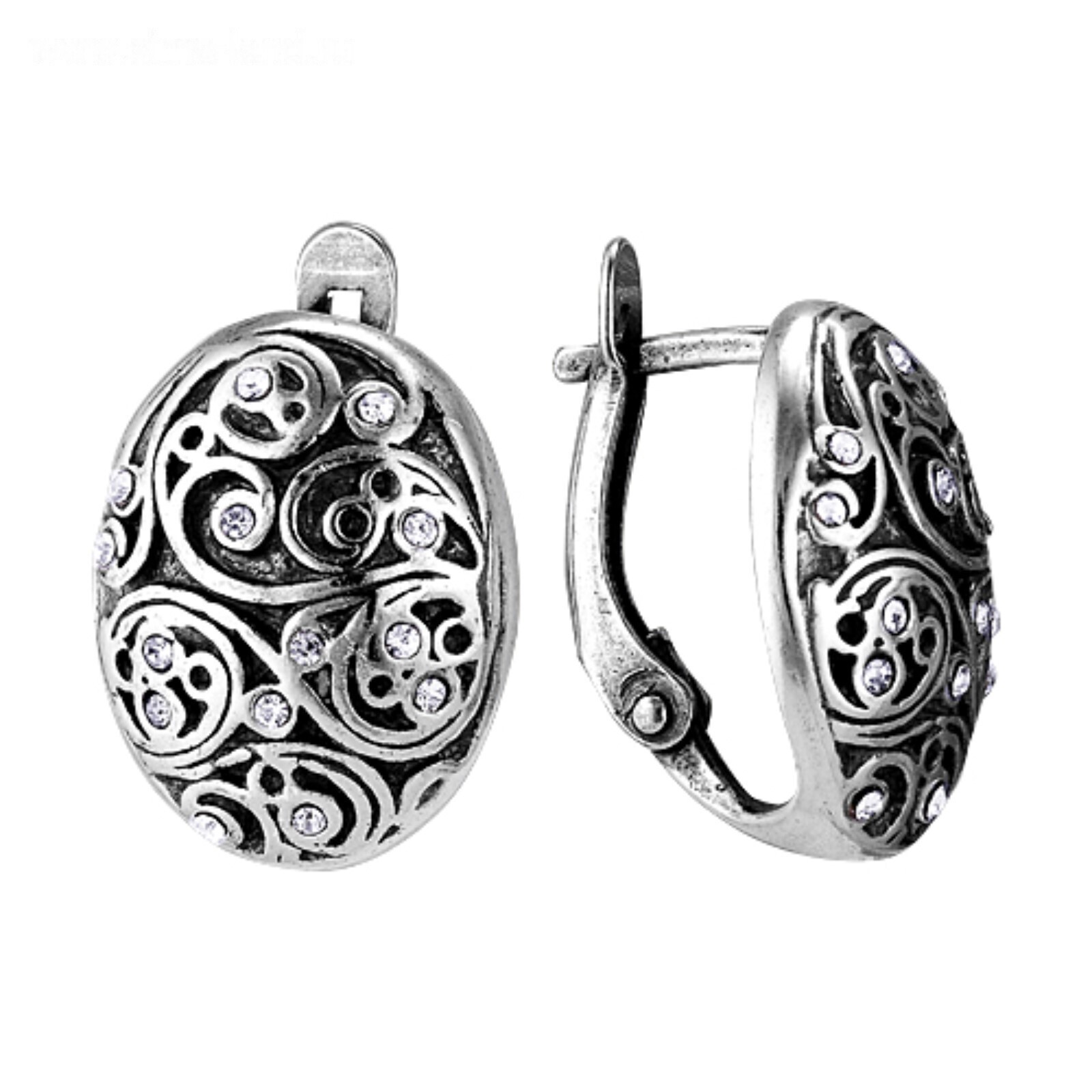 Серьги "Ажурный овал", посеребрение с оксидированием