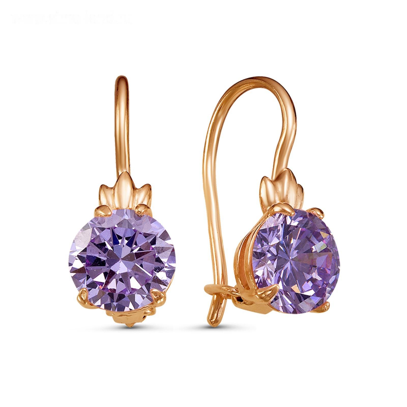 Серьги "Лучик", розовое золочение, цвет фиолетовый