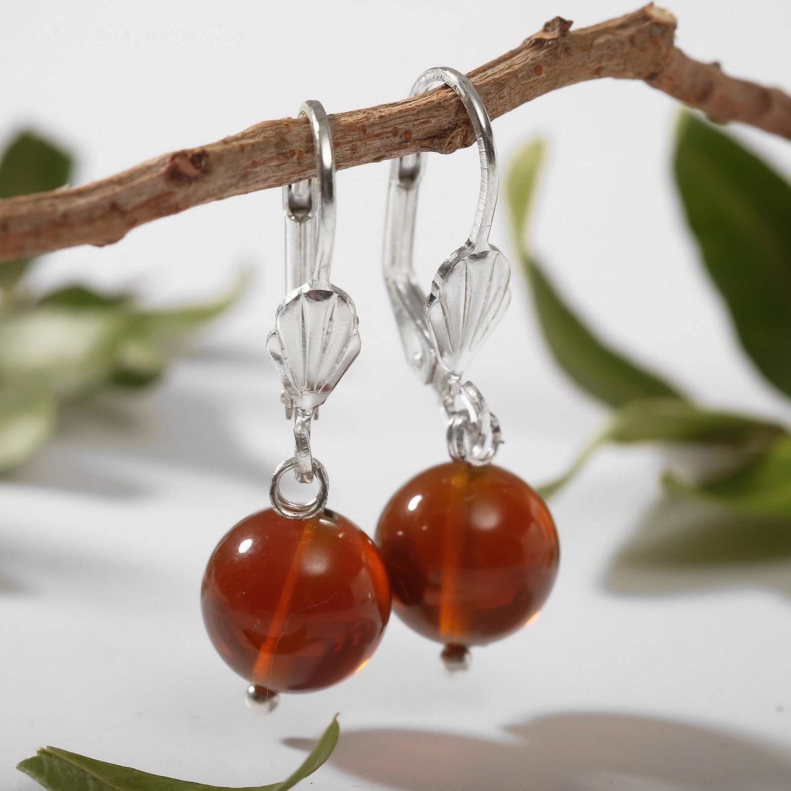 Серьги "Янтарь" шар №10, цвет вишнёвый в серебре