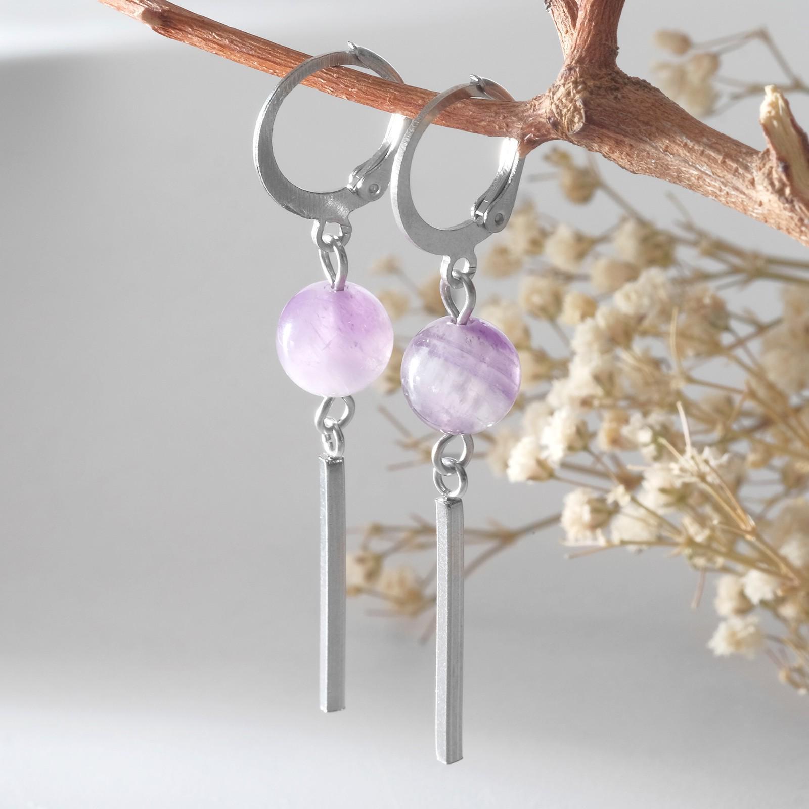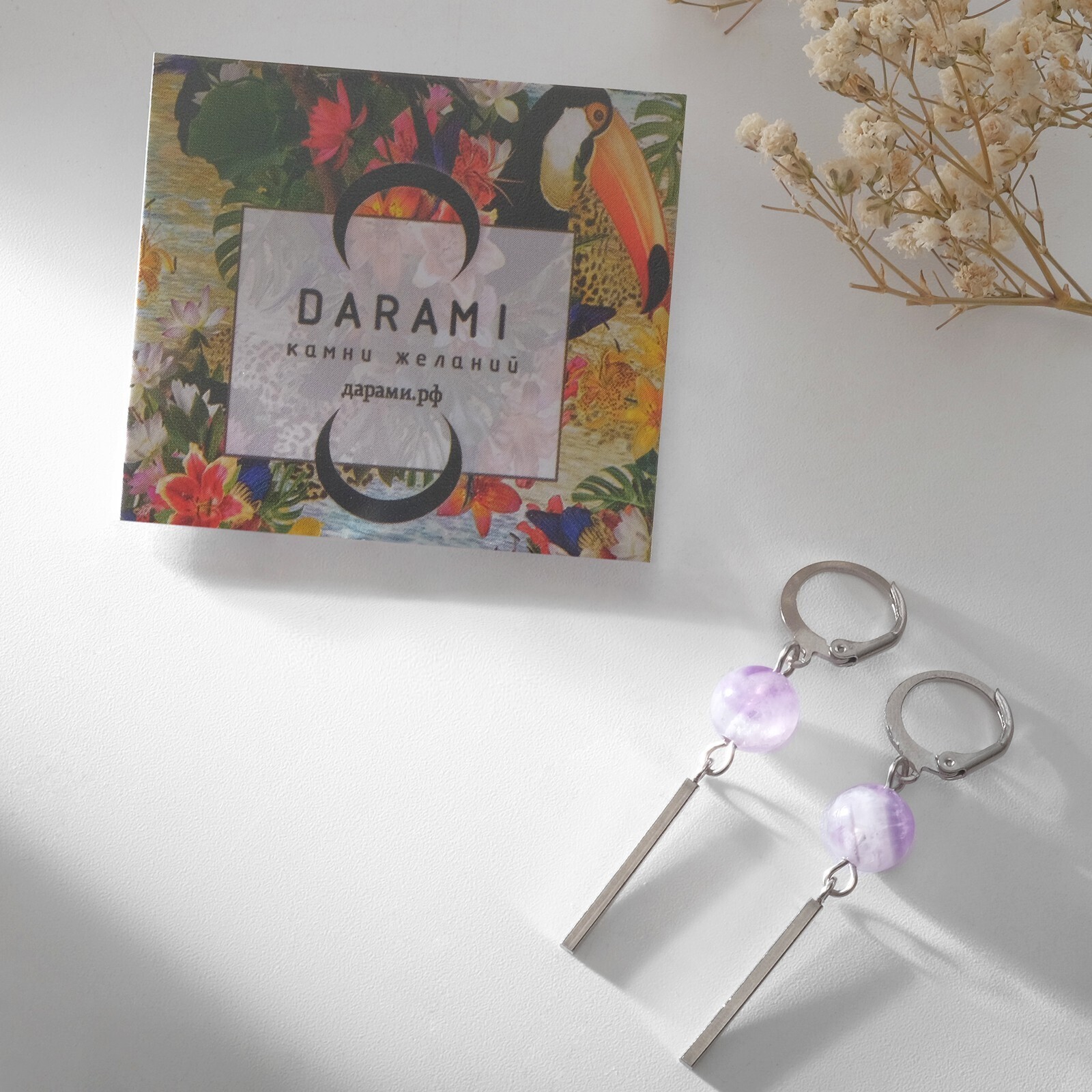 Серьги шар №8 "Аметист" сингл, цвет фиолетовый в серебре