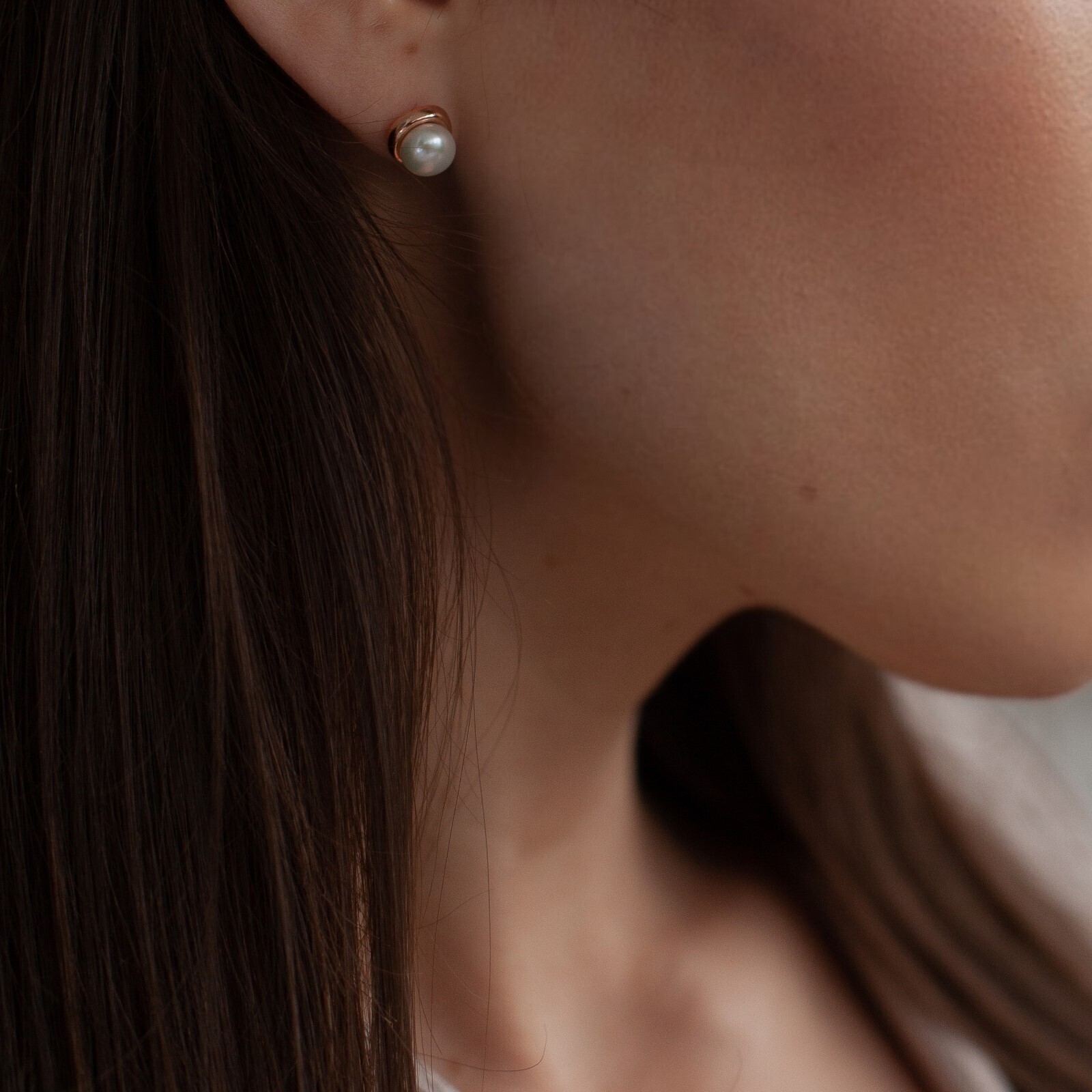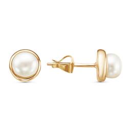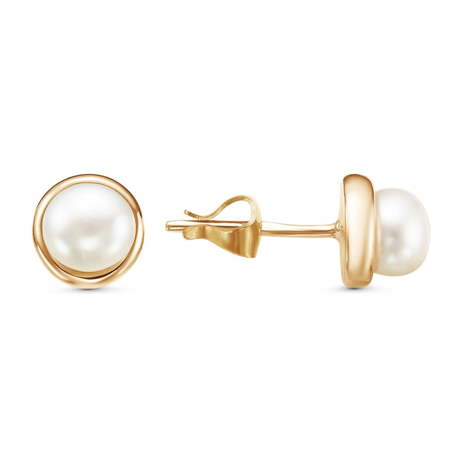 Пусеты "Жемчужинка", розовое золочение, цвет белый