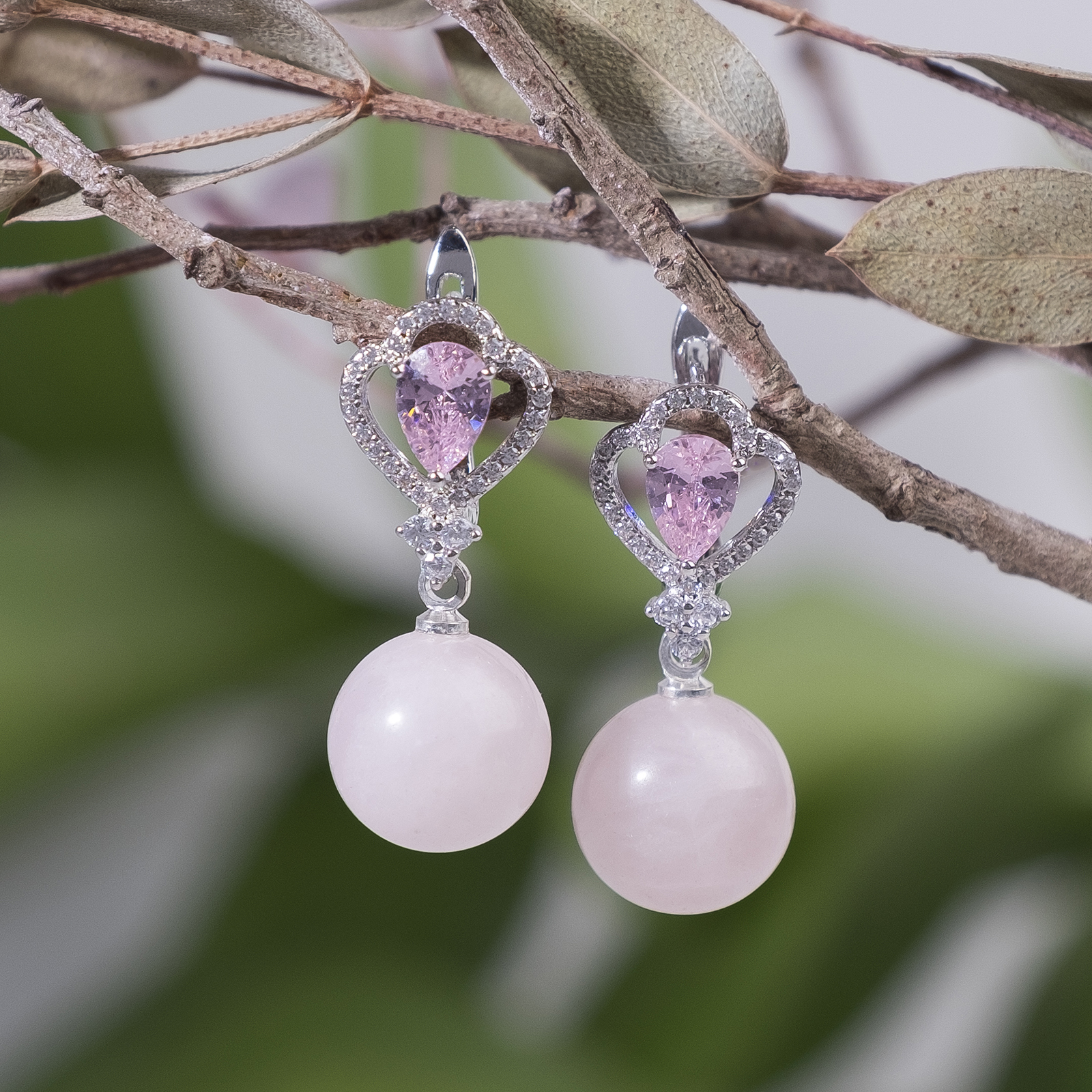 Серьги шар №12 "Кварц розовый" корона