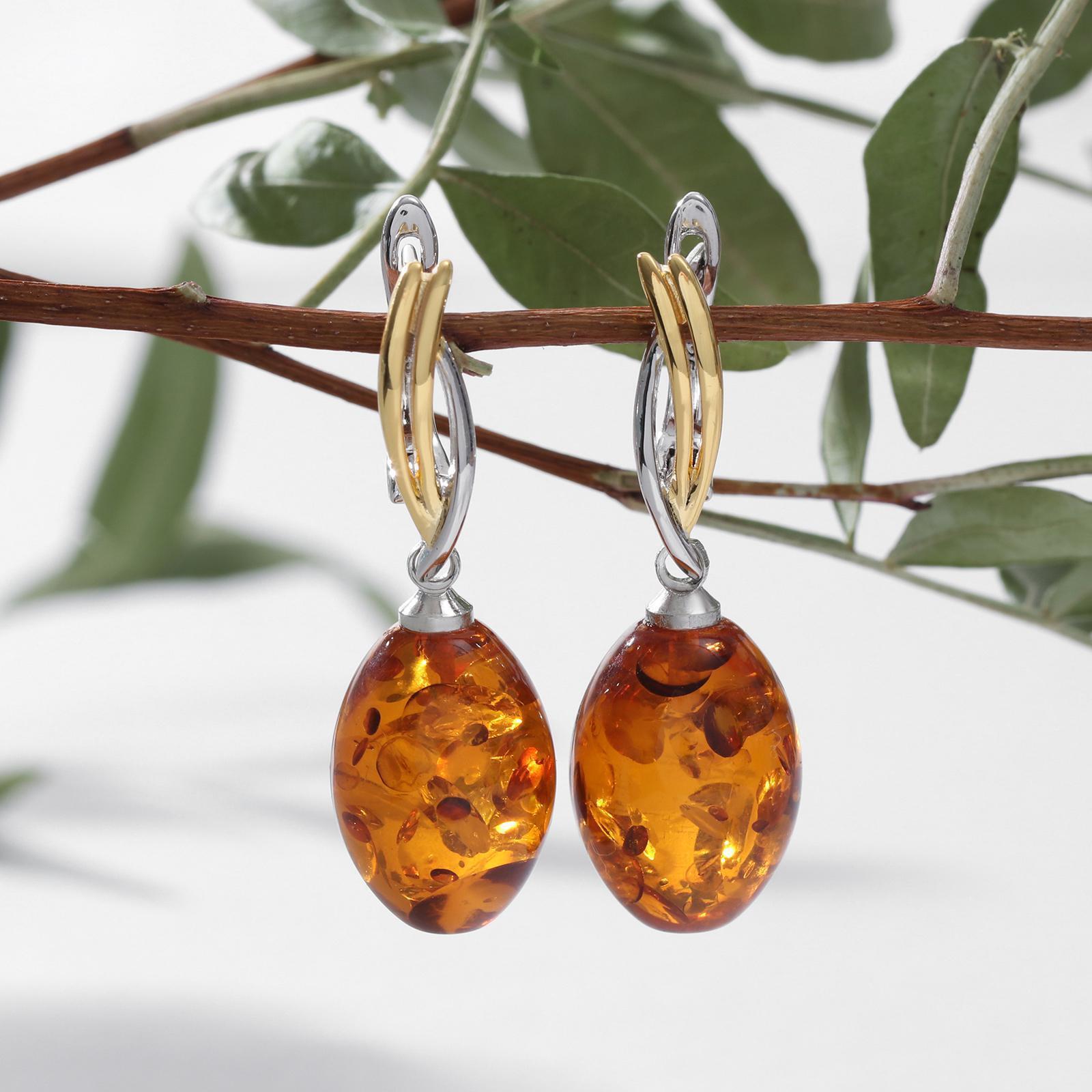 Серьги родированные "Янтарь" рис, дуо, цвет коричневый