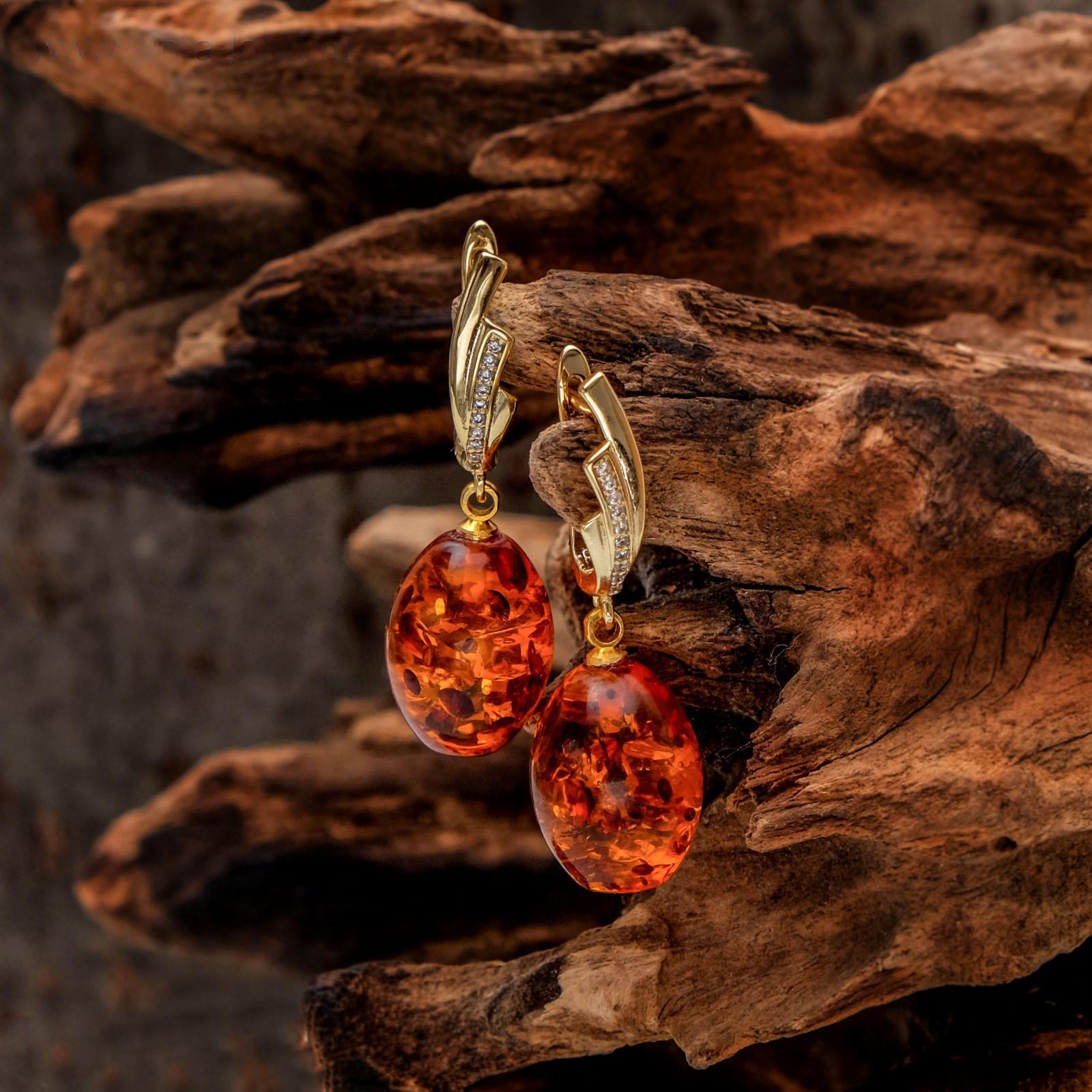 Серьги родирование "Янтарь" рис крупный, цвет коньячный