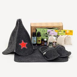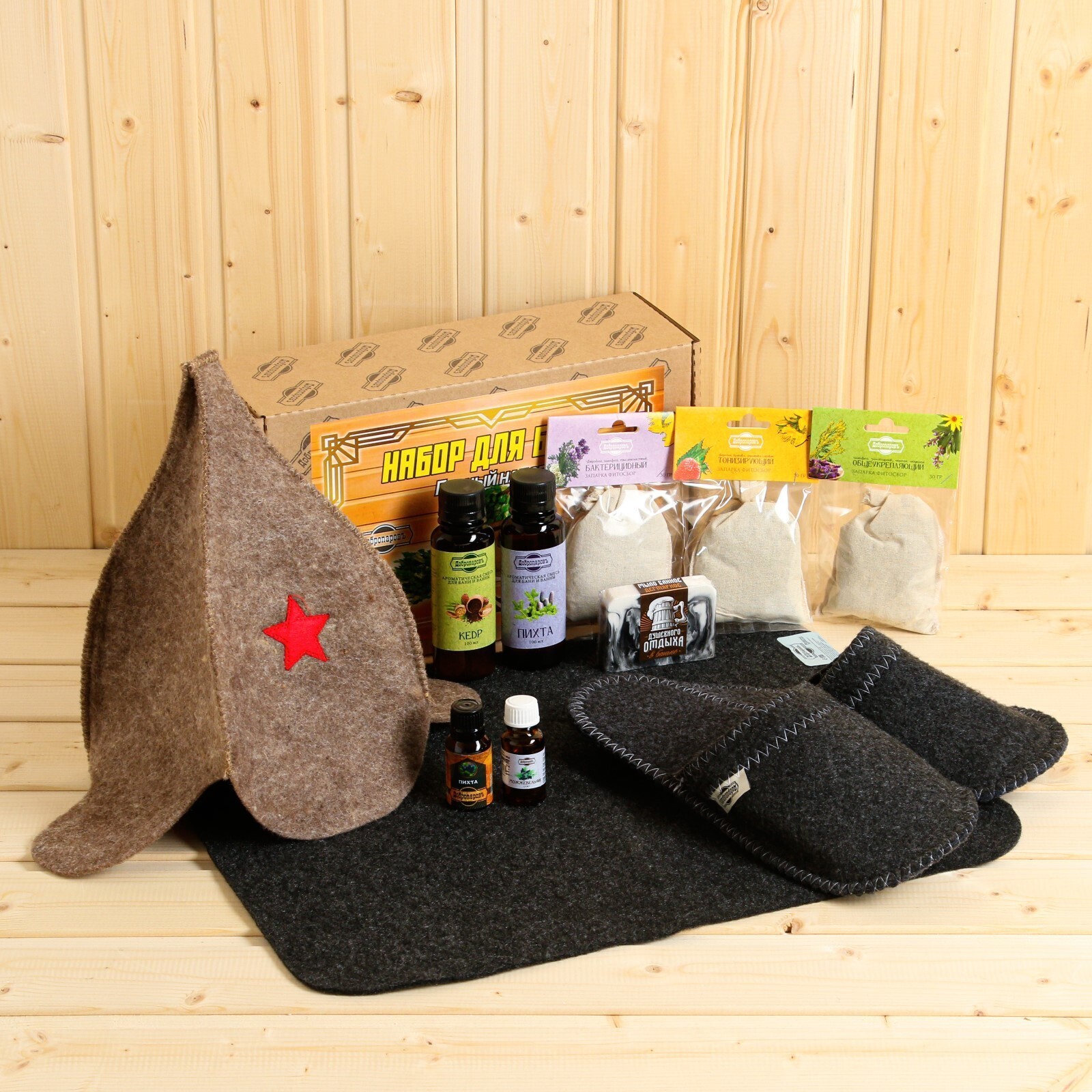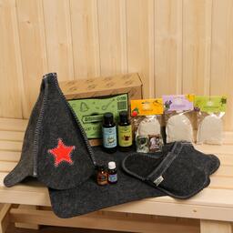 Набор содержит всё необходимое для похода в баню и идеально подойдёт в качестве подарка любителю банных процедур
