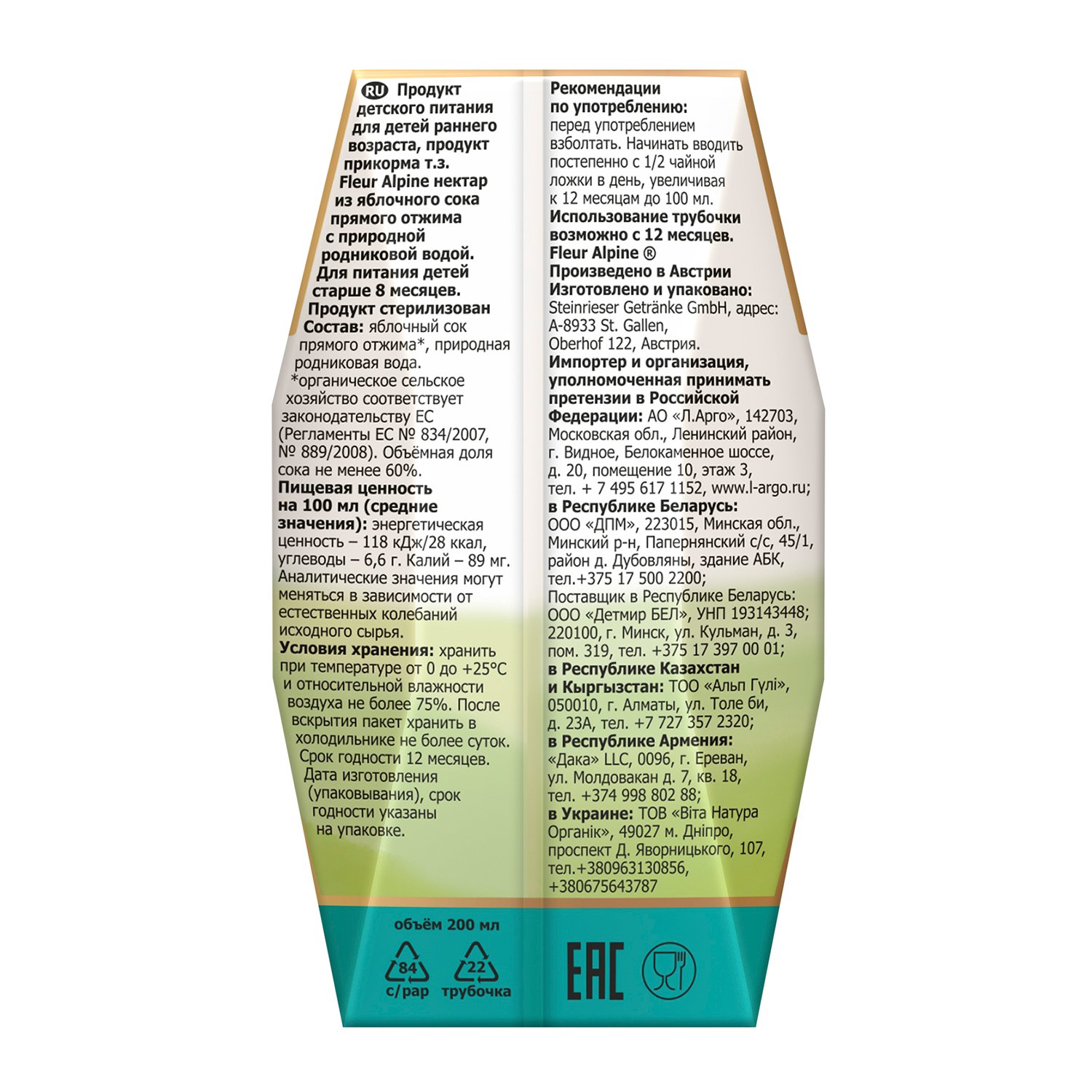 Сок Fleur Alpine с водой яблоко 200мл с 8месяцев 0.7513