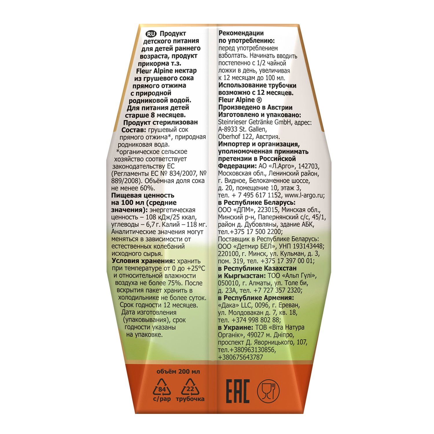 Сок Fleur Alpine с водой груша 200мл с 8месяцев 0.7421
