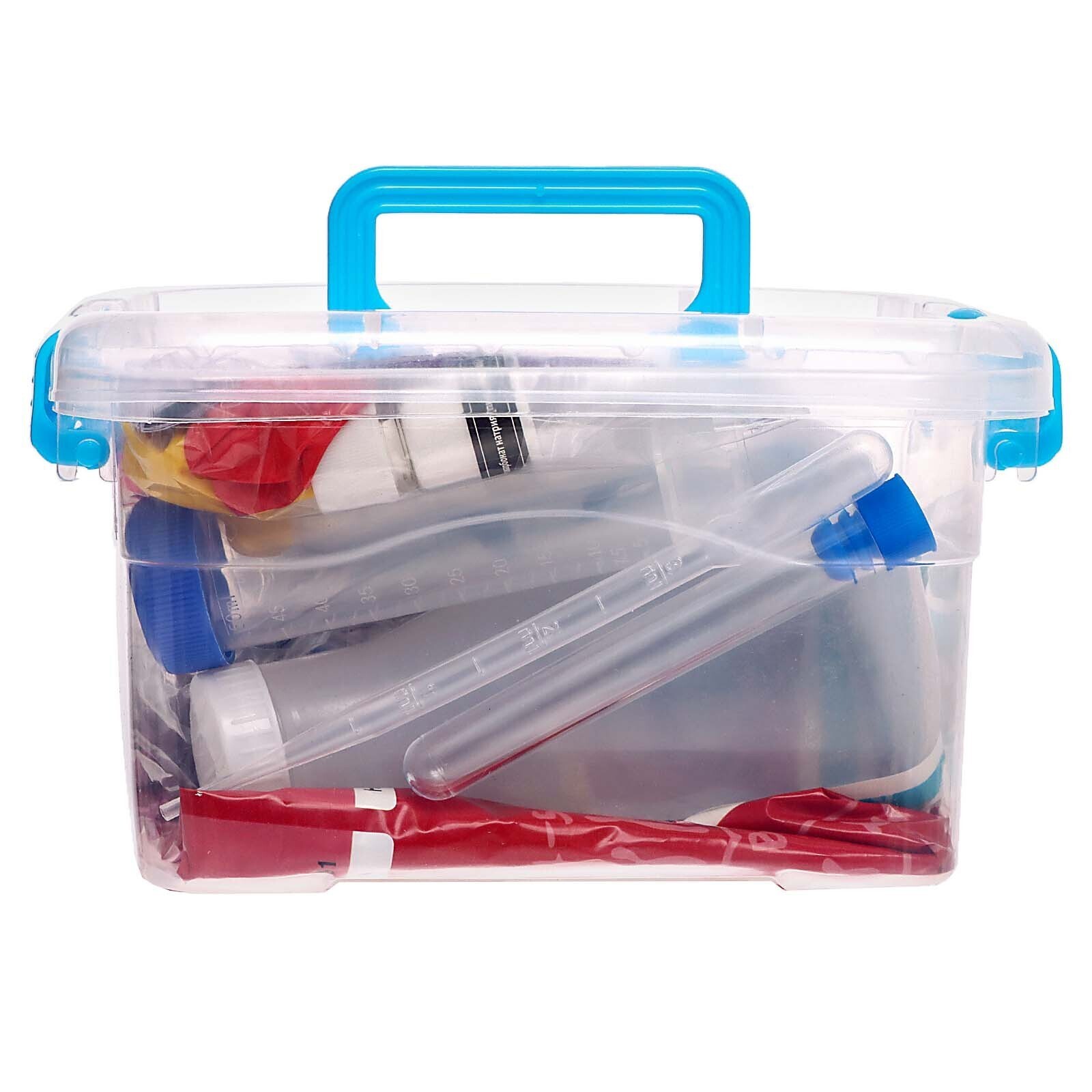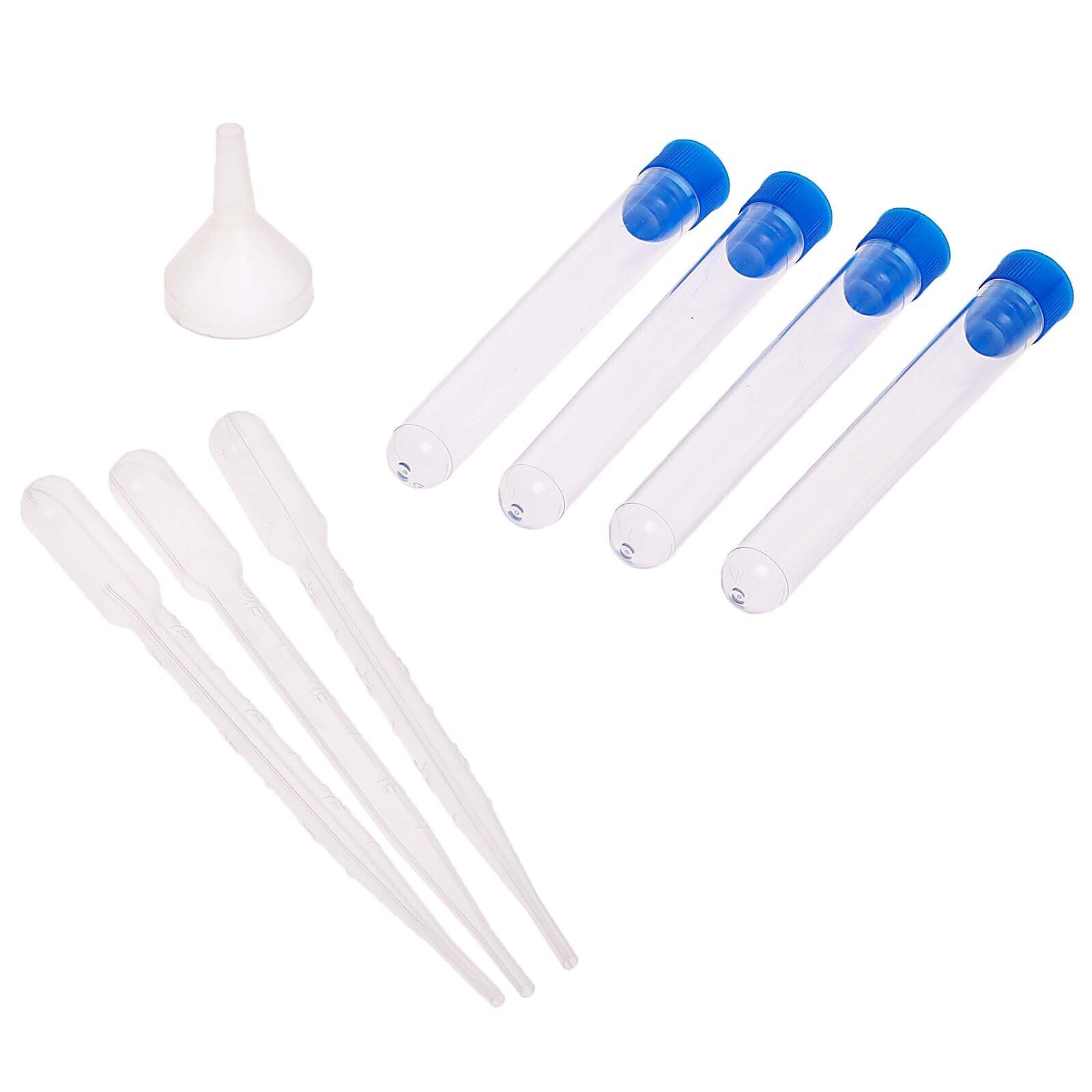 К каждому опыту приводится список необходимых веществ, пошаговая инструкция и объяснение. Набор содержит необходимый лабораторный инвентарь и вещества.