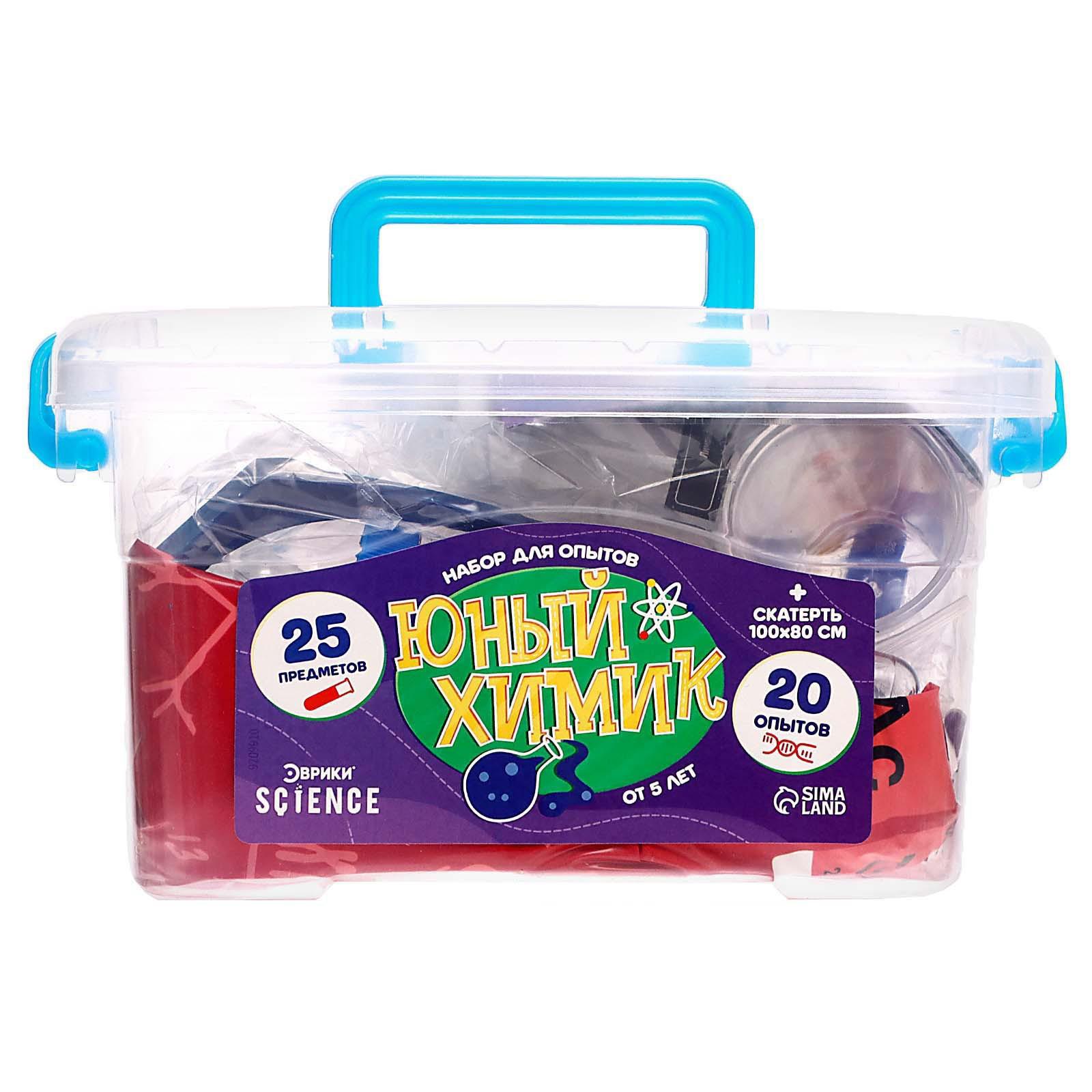 Набор для опытов «Юный химик» — это комплекс нескучных экспериментов. С ними юный учёный научится использовать лабораторное оборудование для исследований, познакомится с научными терминами и сформирует привычку соблюдать основные правила техники безопасности.