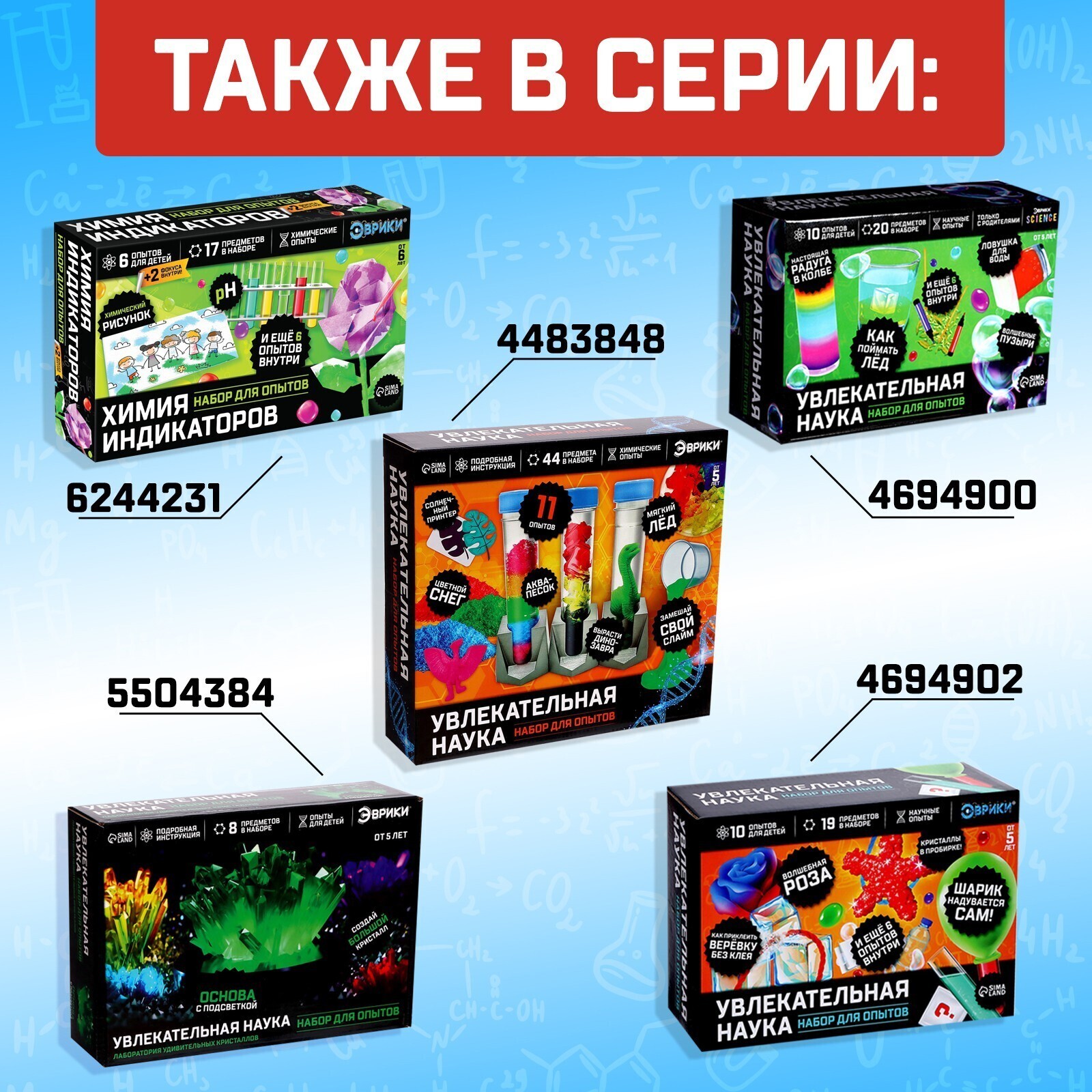 С этим набором для опытов вы проведёте 10 увлекательных экспериментов. Наука — совсем не сложно, а занимательно и весело, если изучать её правильно!